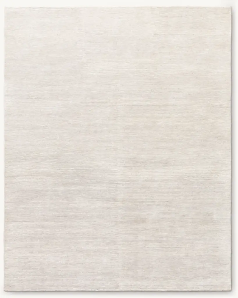 A mix of complementary materials lends our solid Korda rug compelling yet understated variations. Looped wool and sheared viscose alternate across the surface, creating textures and a dynamic play of light.