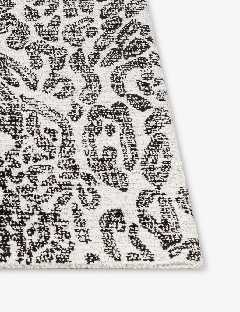 Strike a modern tone with this rug's geometric design. The hand-tufted rug's stripe-on-stripe diamond pattern pops in a high-contrast palette. With its plush woolen pile, it's perfect for sophisticated spaces.