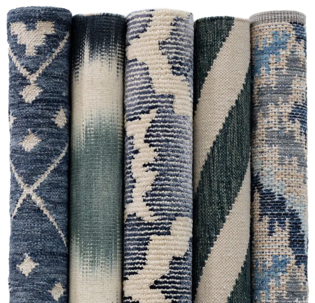 Handwoven using a blend of soft wool and cotton, this flat-weave enlivens any space with its bold geometric design. Oxidized silver thread is woven into its striated indigo field for a hint of glimmer. We recommend a rug pad to extend the life of the rug and keep it securely in place.