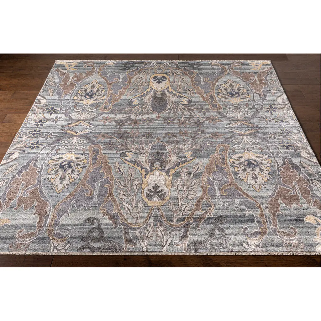 The Kushal Collection showcases traditional inspired designs that exemplify timeless styles of elegance, comfort, and sophistication. With their hand knotted construction, these rugs provide a durability that can not be found in other handmade constructions, and boasts the ability to be thoroughly cleaned as it contains no chemicals that react to water, such as glue. Made with Viscose, Wool in India, and has Medium Pile. Spot Clean Only, One Year Limited Warranty.
