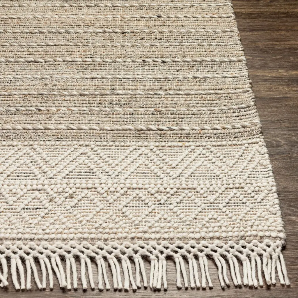 It may be neutral in color, but this handwoven rug offers plenty of aesthetic appeal with its high-low geometric motifs, braided texture, and tonal gradations. A rug pad is recommended to help prevent slipping and extend the life of the rug.
