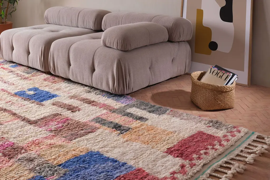 Our Moroccan pieces are each one-of-a-kind. Much of our collection was woven between 30 and 100 years ago, and curated by us. Other rugs in our collection are fresh off the loom and made with traditional techniques. Moroccan rugs don’t come with a key. As with any painting or poem, their motifs have many subjective interpretations. Originally made for personal use, these rugs took months to weave, documenting a shifting tide of events and emotions in the weaver’s life.
