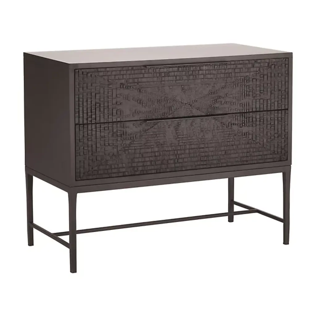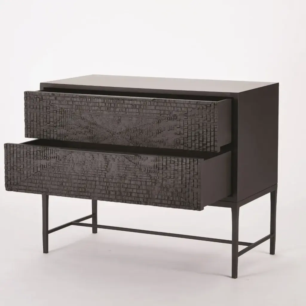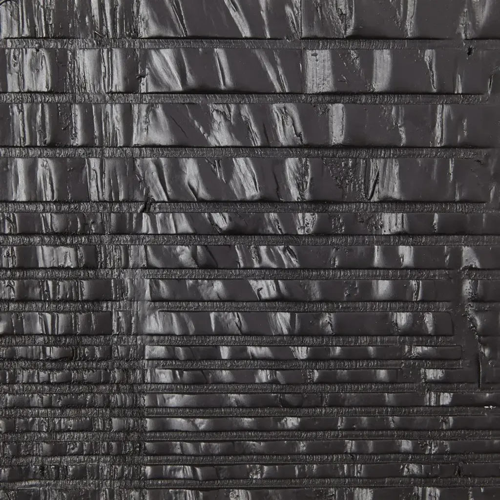 This painstaking carving process is aimed to show a different side of the natural beauty and texture of wood that is not usually seen on plain surfaces. The peaks and valleys created convey an abstract texture that is organic and sculptural in form. Painted in black, the texture mimics that of delicate charcoal with none of its instability. Constructed of Gmelina wood, a cousin to Beechwood. Matte black finish. From a fashion forward perspective, Global Views offers accessories, furniture, statement lighting, and an assortment of rugs and mirrors to add beauty and joy to your home.