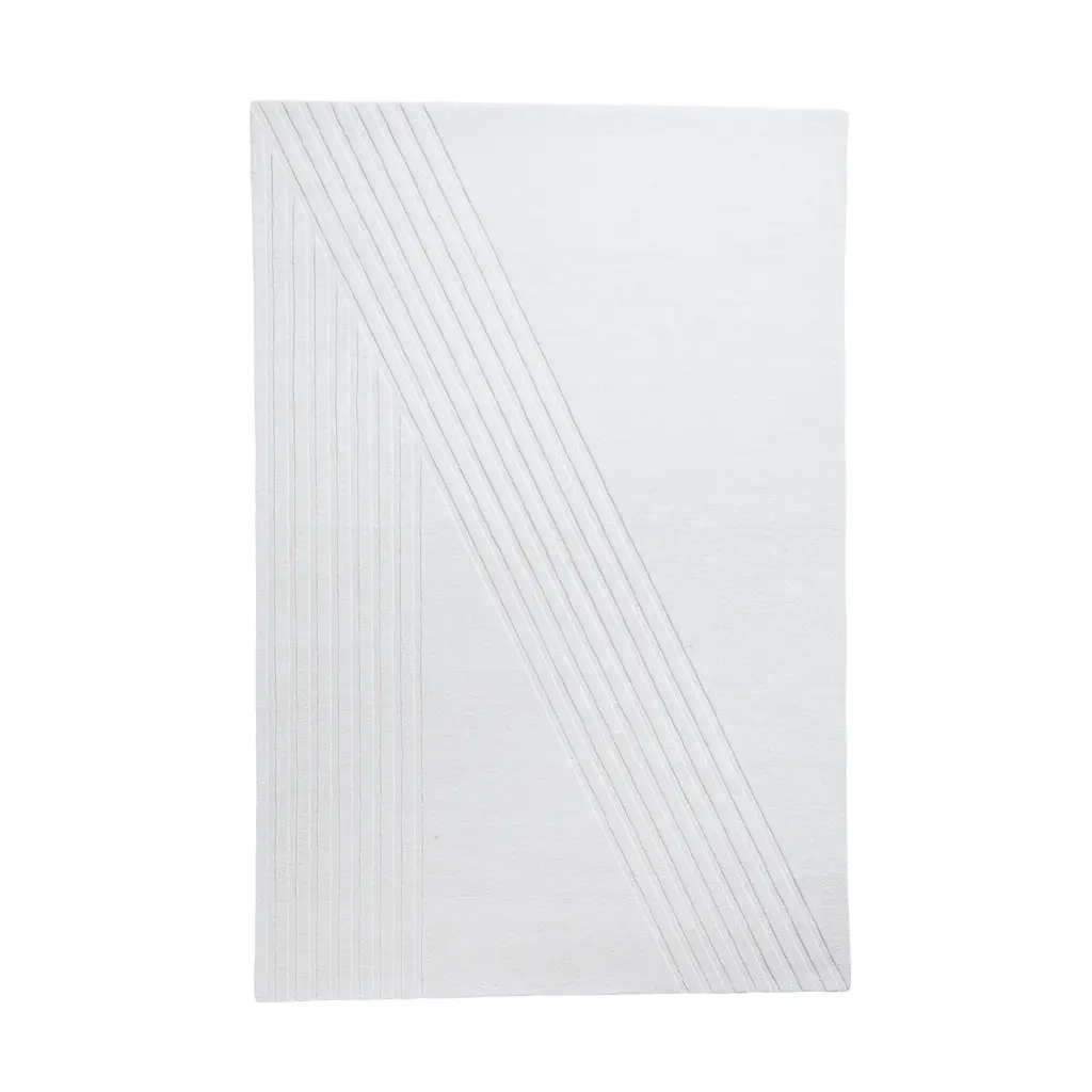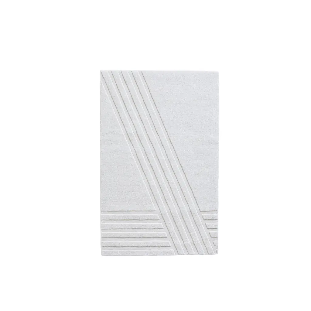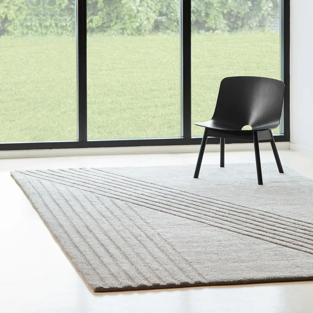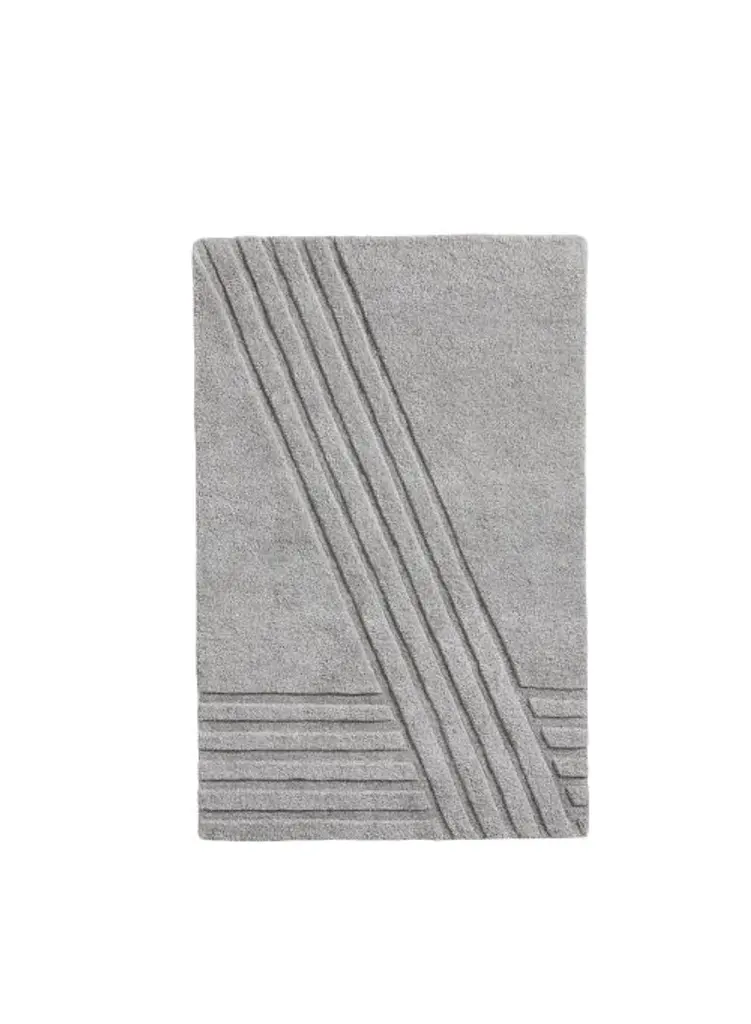 Elevate your living space with the Kyoto Rug by WOUD, inspired by the serene beauty of traditional Japanese rock gardens. Crafted through hand-tufted construction, this rug boasts a unique, minimalistic cut pile that exudes tranquility. Delicate lines, etched in diagonal and straight motions, create a sense of graceful movement, infusing your home with a peaceful ambiance. Versatile and refined, the Kyoto Rug serves as the perfect centerpiece for any living space, bedroom, or dining area, adding a touch of timeless elegance to your interior decor.