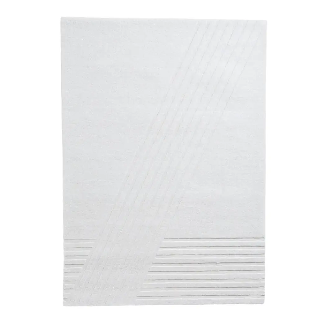 The hand-tufted wool rug, Kyoto, takes its inspiration from the distinctive pattern found in traditional raked Japanese rock gardens. With its minimalistic linear cut piles, the design provides a quiet sense of movement as the engraved lines travel in straight and diagonal motions. The rug comes in four sizes, each with an individual design. Available in off white and in natural grey, Kyoto provides a complementing base for a furniture setting while also bringing a sense of the textured landscape inside.