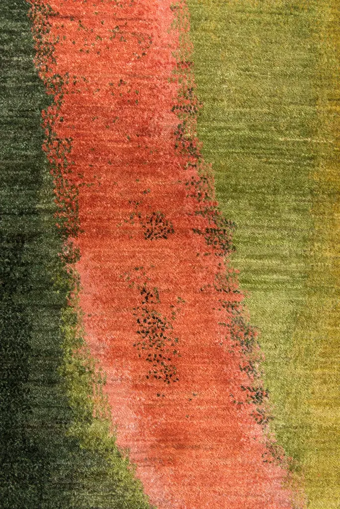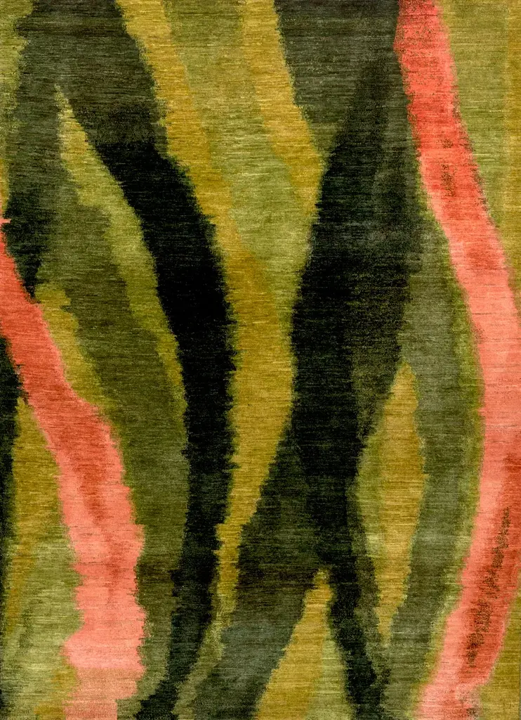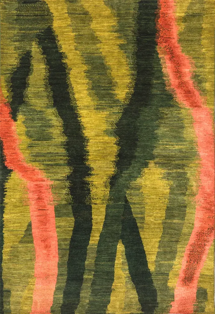 KYOTO SHIBORI 3 is a rectangular wool rug.Zollanvari Super Fine Gabbehs.This collection looks East to Japan and pushes the limits of contemporary carpet design weaving in Iran. The inspiration for this collection stems from contemporary Japanese textiles, with intricate bold designs in sophisticated colour combinations and complex ikat-like patterns. These designs have been very challenging to execute and the results are spectacular. All carpets are woven using fine Persian wool from the Zagros Mountains which is hand-carded and hand-spun and dyed using 100% natural dyes. This collection will be seen for the first time at M&O Paris in September 2017.