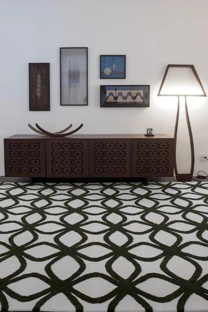 Residential and corporate rugs, handmade with 100% recycled nylon yarn with graphics based on shapes present in Brazilian cities.