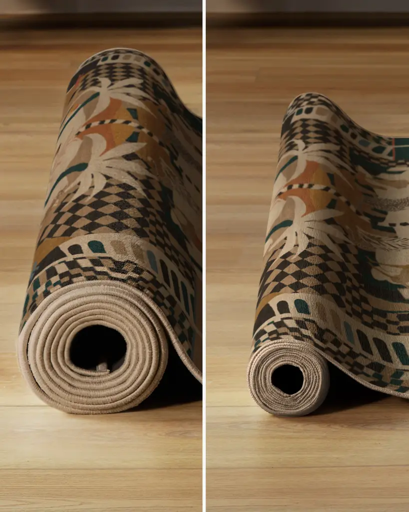 Make inspiration reality with our Architectural Digest La Joie Natural Multicolor Rug, designed by David Quarles IV. Drawing inspiration from imaginative artists like Kehinde Wiley, Dali, Frida Kahlo, and Basquiat, this design is a visual storytelling of the Garden of Eden. Its colorful display of figures, nature, and animals weaves a folky, patchworked composition that exudes a tropical, joyful ambiance. Taupe, charcoal, mustard, ginger, teal, and coral play atop a cream background. Water-resistant, stain-resistant, and machine-washable. Rug colors may vary slightly according to your device and the lighting in your space.
