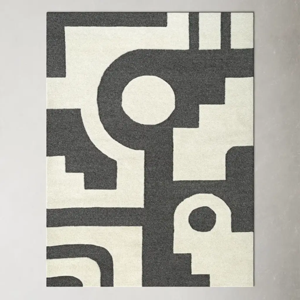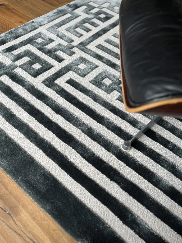 Labirinto is a hand-tufted geometric rug in New Zealand wool and Tencel.A collection between fashion and design, made up of hand-tufted flowers, carpets and wall-hangings based on Ken Scott’s archive designs. A tribute to the famous painter and eclectic designer who marked fashion and design trends in the 60s and 70s. The carpets show the world of Ken Scott, made of colour, irony, spectacular flowers, animals and childish abstract shapes.