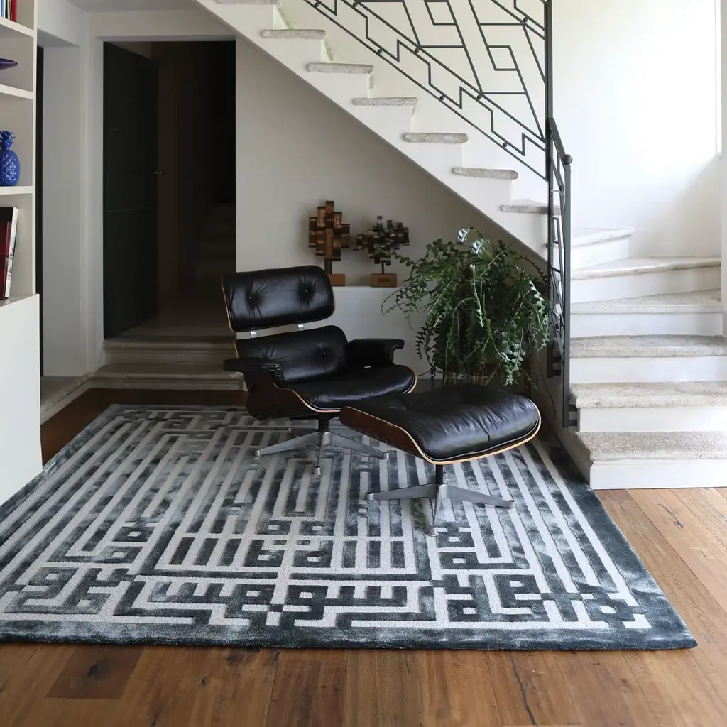 Labirinto Gray New Zealand Wool & Tencel Rug By Ken Scott
