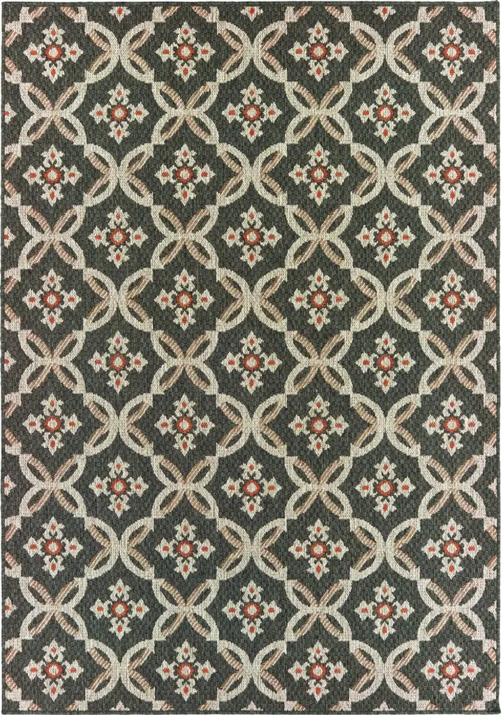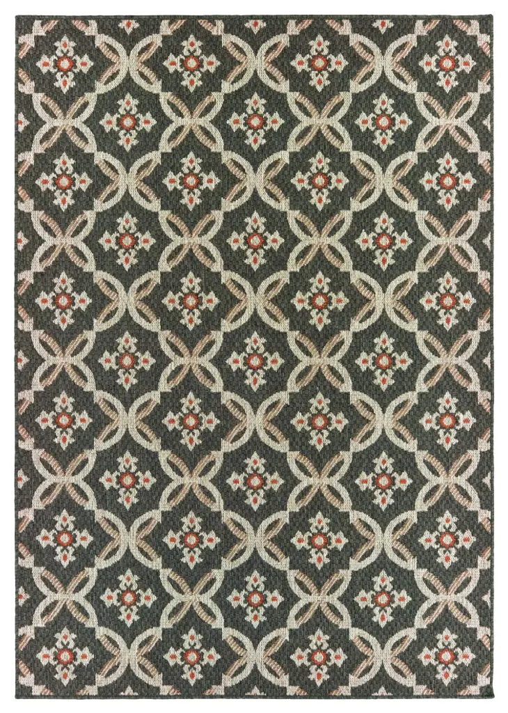 Laguna Floral Gray/orange Indoor/outdoor Loop Pile Area Rug, 7'10"x10'