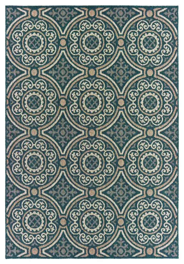 Laguna Medallion Blue/gray Indoor/outdoor Loop Pile Area Rug, 6'7"x9'2"