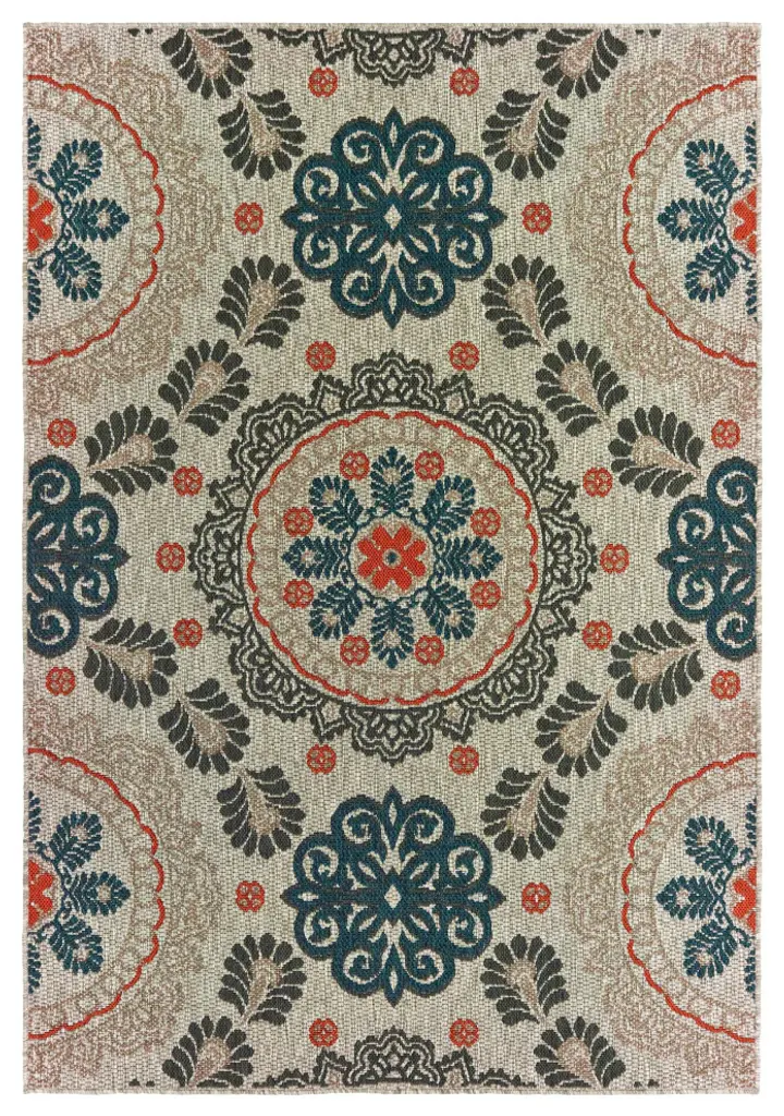 Laguna Medallion Gray/blue Indoor/outdoor Loop Pile Area Rug, 9'10"x12'10"