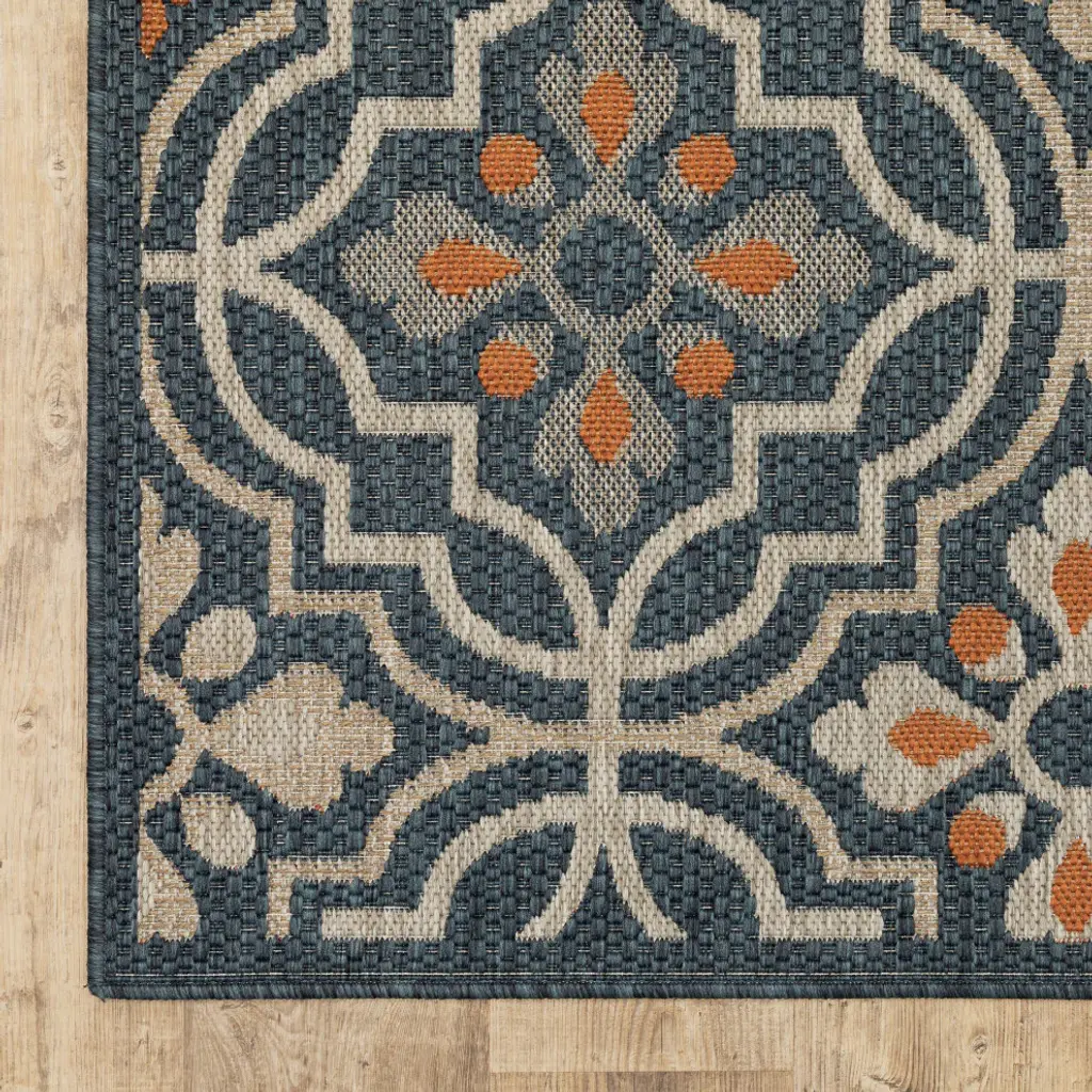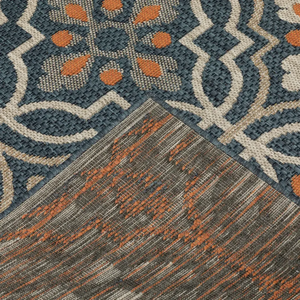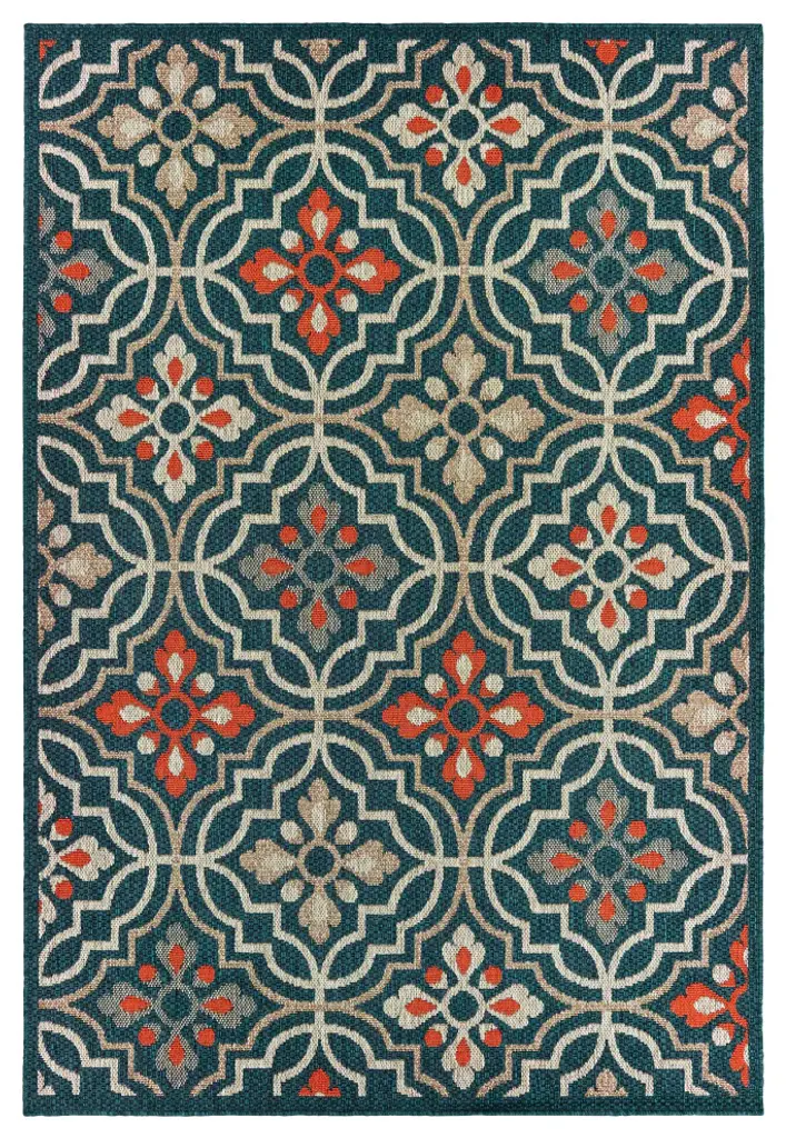 Laguna Trefoil Blue/orange Indoor/outdoor Loop Pile Area Rug, 6'7"x9'2"