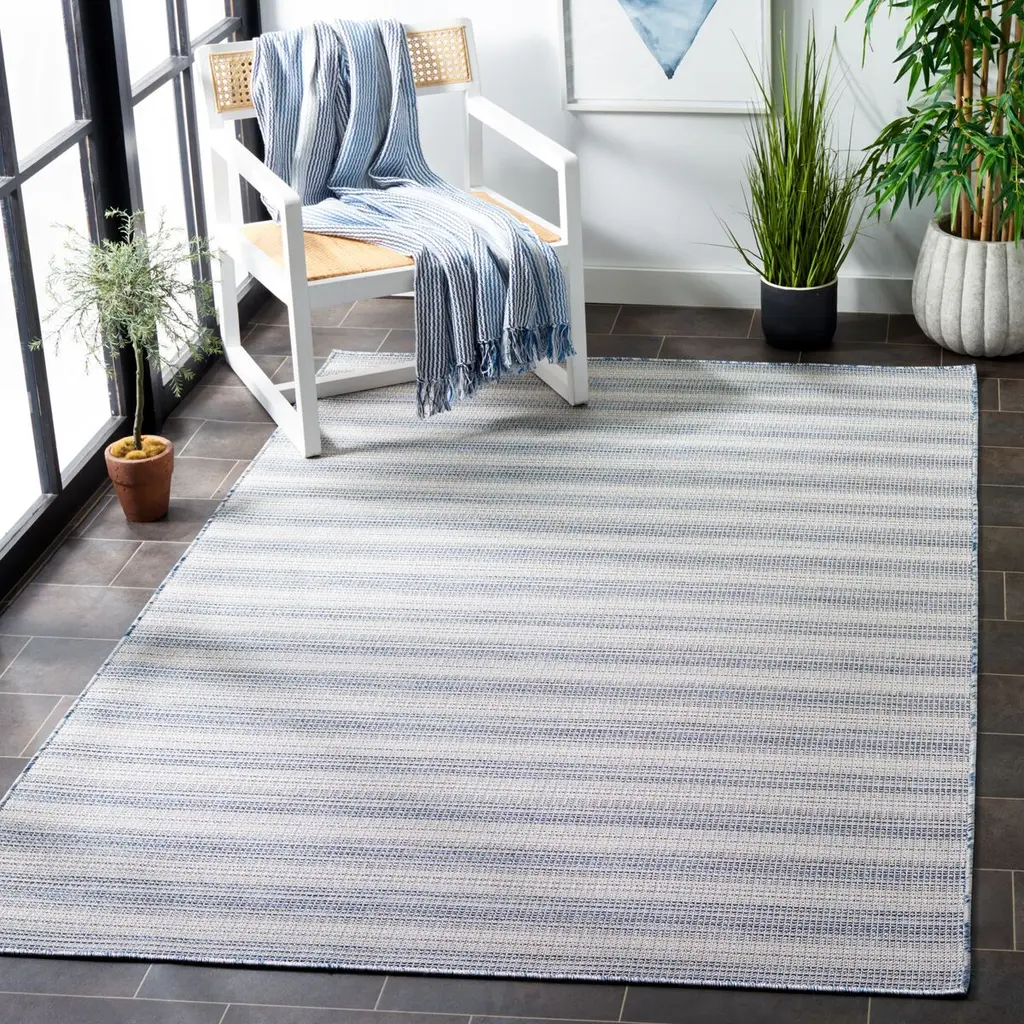Tonal variations add to the artisanal appeal of this durable striped rug. Designed to withstand the elements, it will bring flair to high-traffic outdoor and indoor spaces alike. The rug is especially easy to clean: You can even hose it down. Latex backing adds to its longevity. The rug is Oeko-Tex Standard 100 certified, meaning it has been tested for harmful substances.