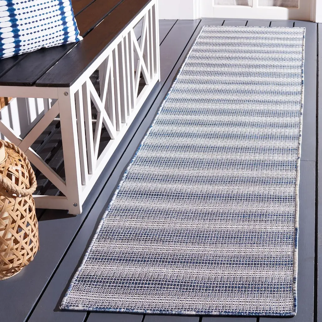 Tonal variations add to the artisanal appeal of this durable striped rug. Designed to withstand the elements, it will bring flair to high-traffic outdoor and indoor spaces alike. The rug is especially easy to clean: You can even hose it down. Latex backing adds to its longevity. The rug is Oeko-Tex Standard 100 certified, meaning it has been tested for harmful substances.