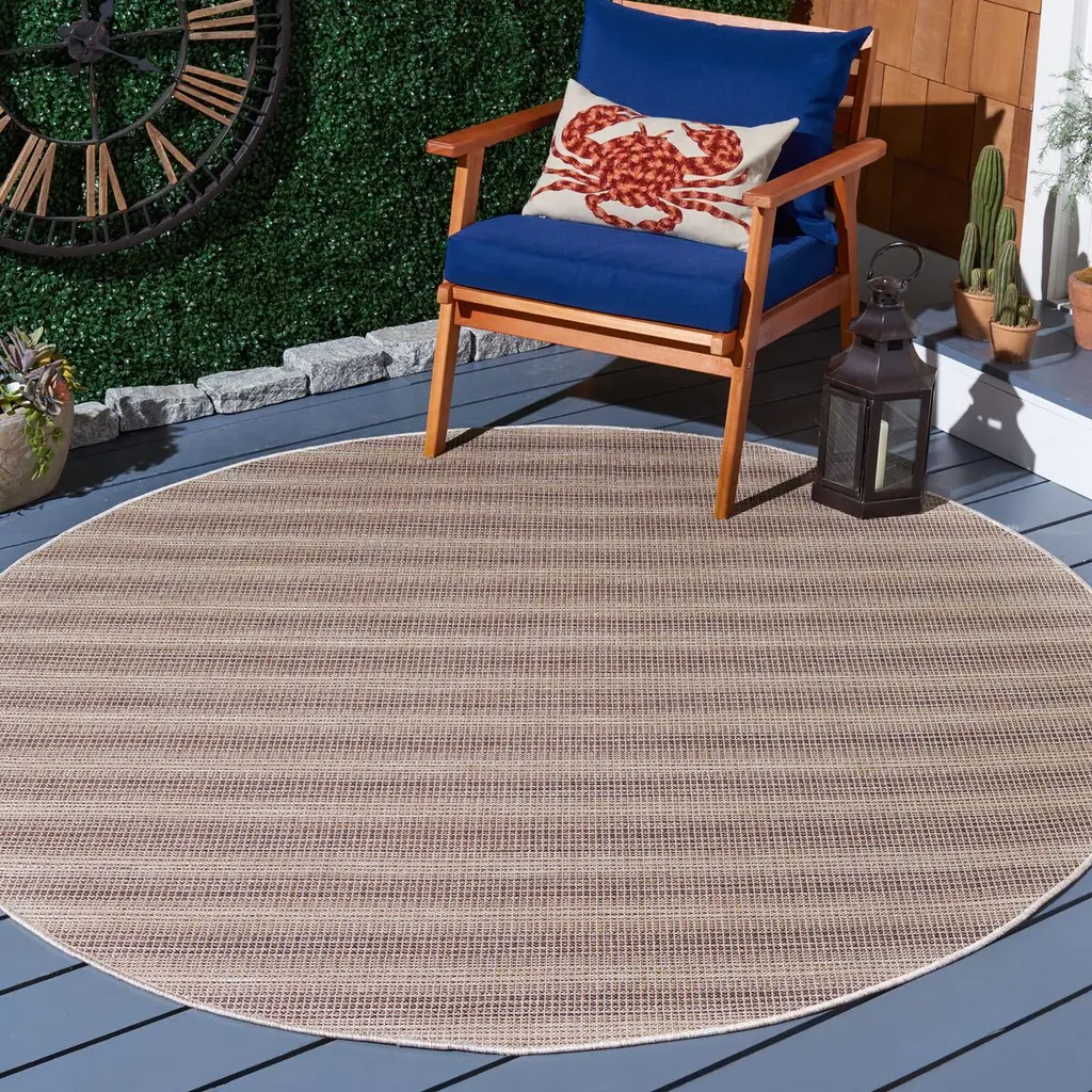 Tonal variations add to the artisanal appeal of this durable striped rug. Designed to withstand the elements, it will bring flair to high-traffic outdoor and indoor spaces alike. The rug is especially easy to clean: You can even hose it down. Latex backing adds to its longevity. The rug is Oeko-Tex Standard 100 certified, meaning it has been tested for harmful substances.