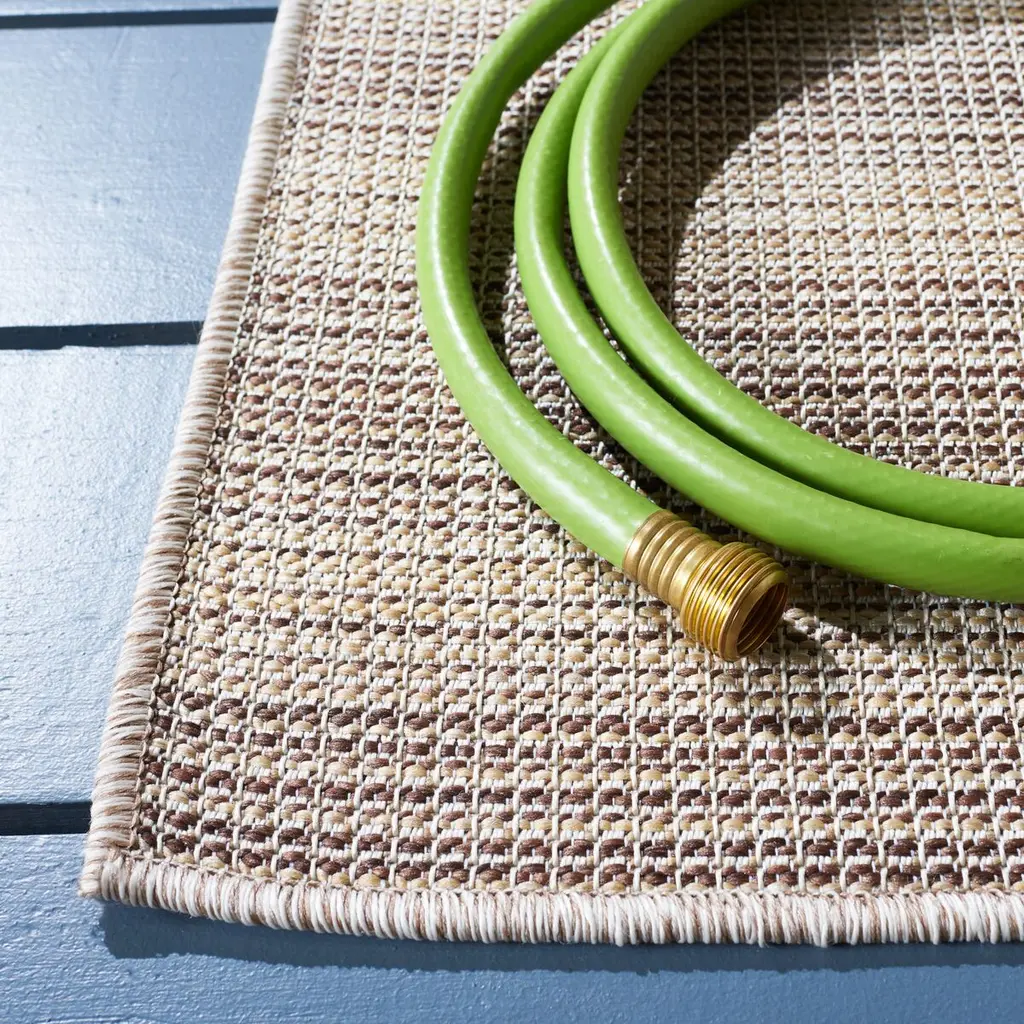 Tonal variations add to the artisanal appeal of this durable striped rug. Designed to withstand the elements, it will bring flair to high-traffic outdoor and indoor spaces alike. The rug is especially easy to clean: You can even hose it down. Latex backing adds to its longevity. The rug is Oeko-Tex Standard 100 certified, meaning it has been tested for harmful substances.