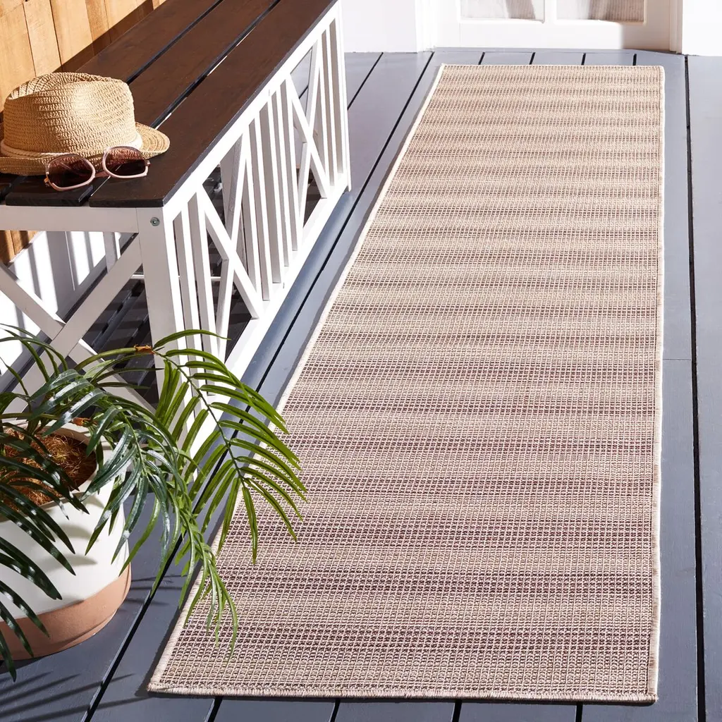 Tonal variations add to the artisanal appeal of this durable striped rug. Designed to withstand the elements, it will bring flair to high-traffic outdoor and indoor spaces alike. The rug is especially easy to clean: You can even hose it down. Latex backing adds to its longevity. The rug is Oeko-Tex Standard 100 certified, meaning it has been tested for harmful substances.