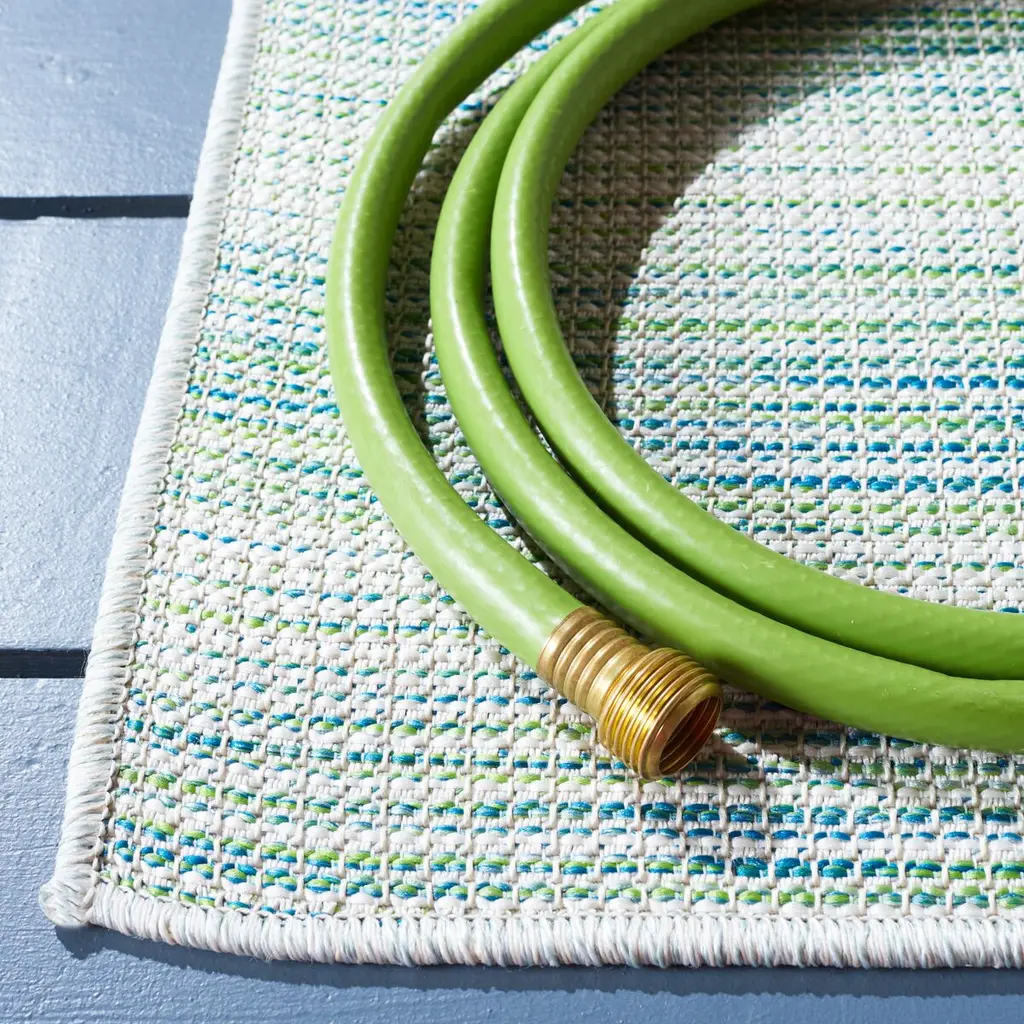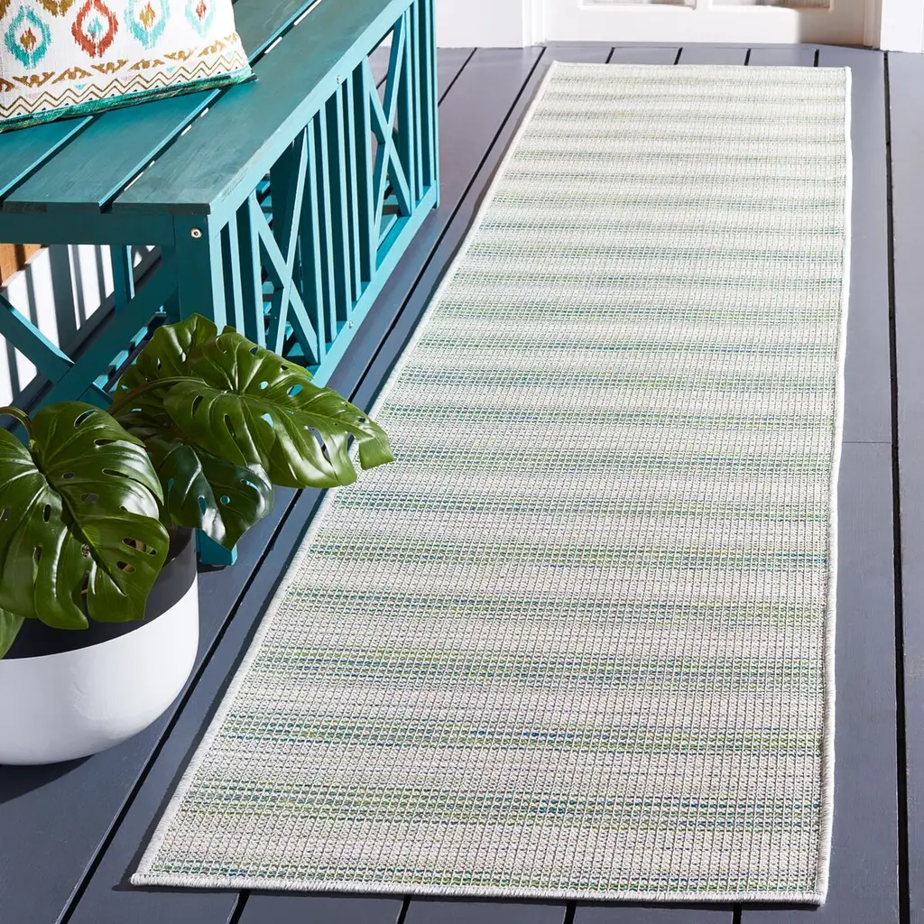 Tonal variations add to the artisanal appeal of this durable striped rug. Designed to withstand the elements, it will bring flair to high-traffic outdoor and indoor spaces alike. The rug is especially easy to clean: You can even hose it down. Latex backing adds to its longevity. The rug is Oeko-Tex Standard 100 certified, meaning it has been tested for harmful substances.