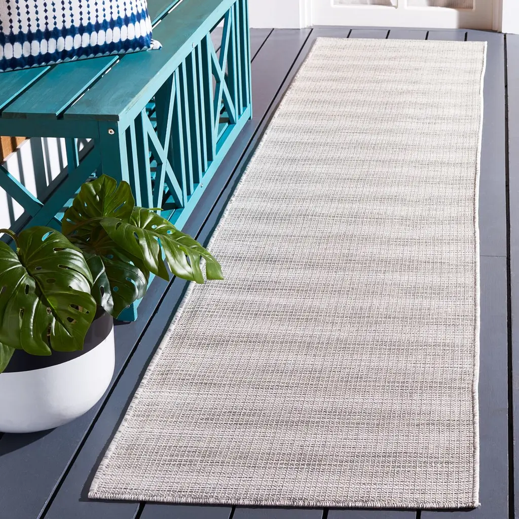Tonal variations add to the artisanal appeal of this durable striped rug. Designed to withstand the elements, it will bring flair to high-traffic outdoor and indoor spaces alike. The rug is especially easy to clean: You can even hose it down. Latex backing adds to its longevity. The rug is Oeko-Tex Standard 100 certified, meaning it has been tested for harmful substances.