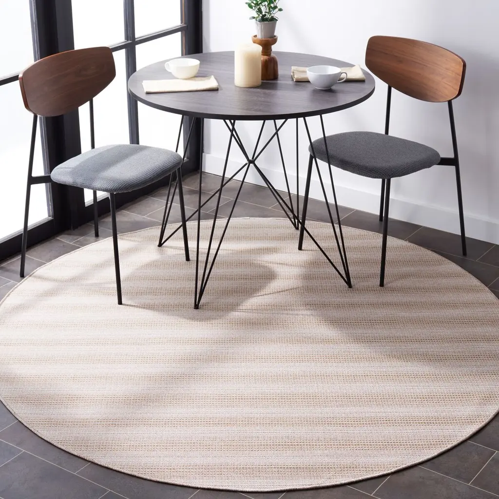 Tonal variations add to the artisanal appeal of this durable striped rug. Designed to withstand the elements, it will bring flair to high-traffic outdoor and indoor spaces alike. The rug is especially easy to clean: You can even hose it down. Latex backing adds to its longevity. The rug is Oeko-Tex Standard 100 certified, meaning it has been tested for harmful substances.