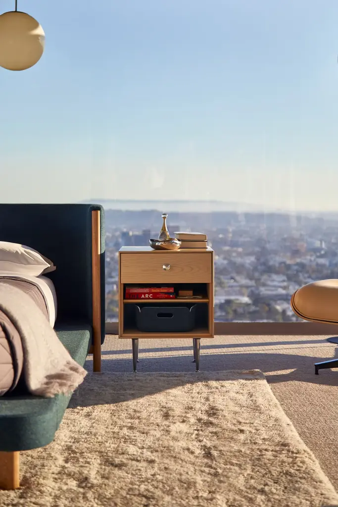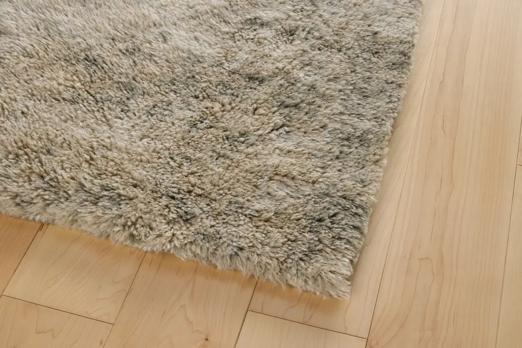 The Lana Shag Rug (2023), part of the DWR Rug Collection, features luxurious high pile with a wonderfully lush texture and quietly varied neutral hues. Woven by hand on a horizontal manual loom, the shaggy surface is both playful and visually interesting. It also feels incredibly soft and cozy underfoot. Some shedding is natural; do not vacuum with a brush roller. Made in India.