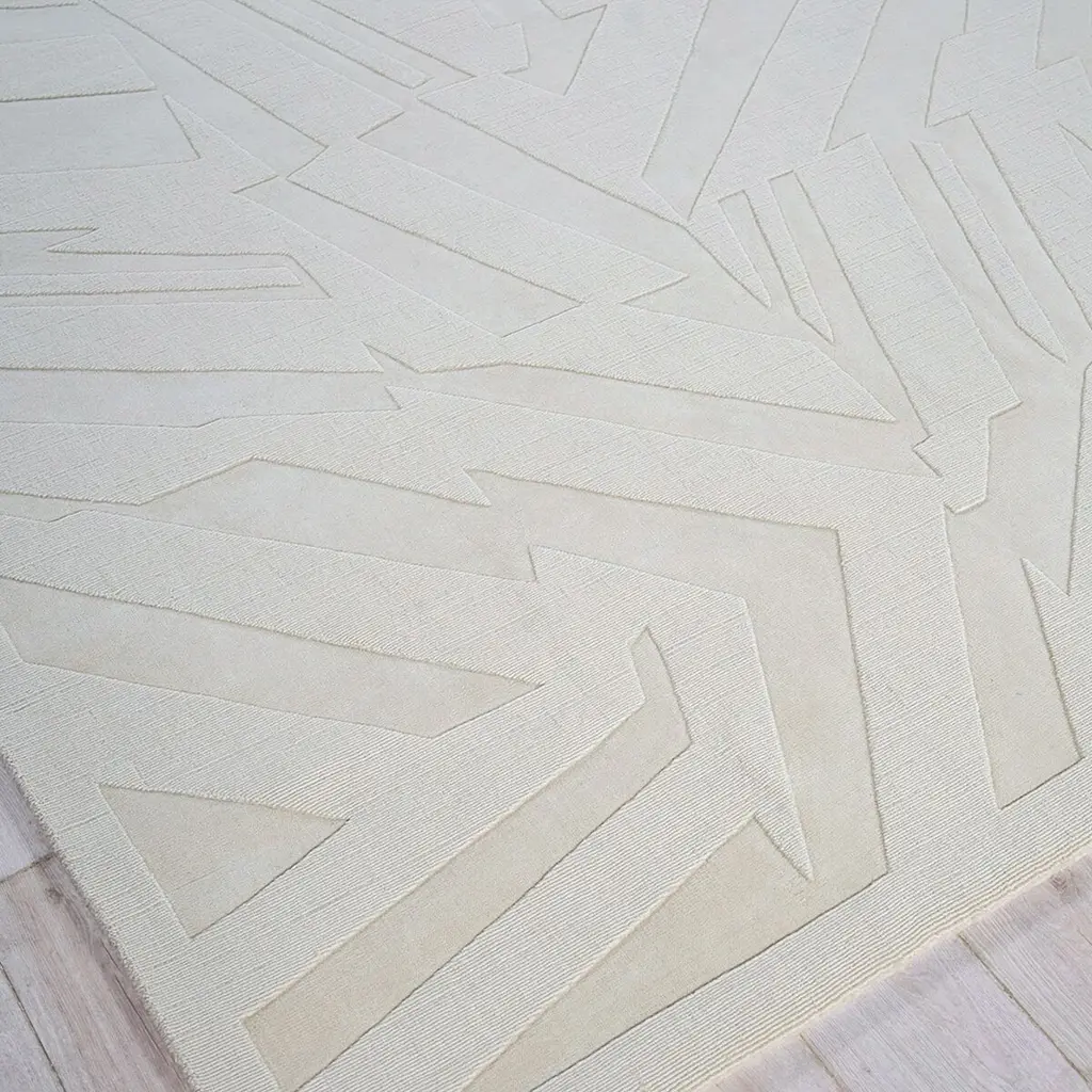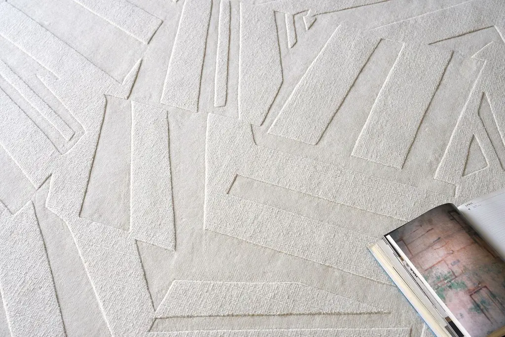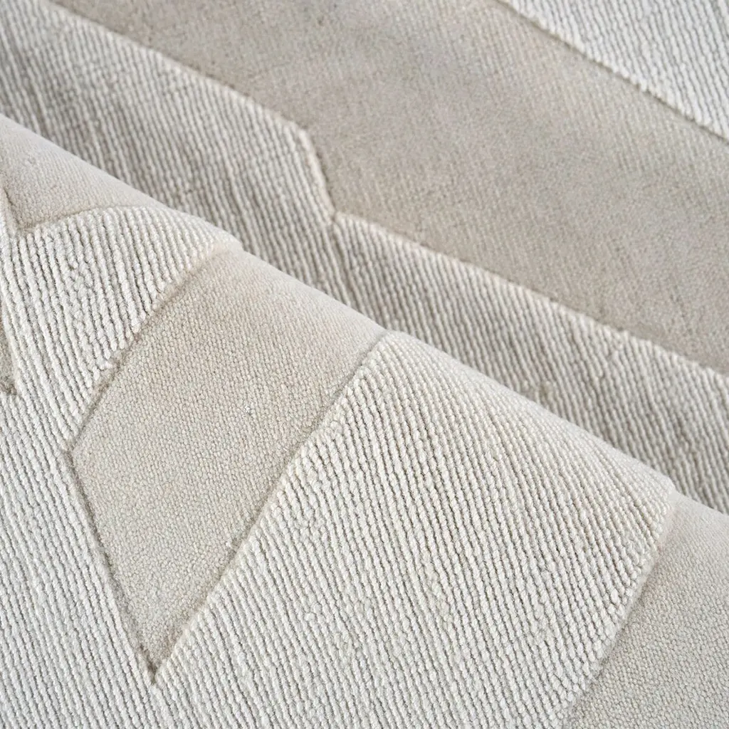 The graphic patterns feature the use of 100% New Zealand wool fiber. A combination of cut and loop pile defines the larger-scale geometric patterns. In addition to its visual appeal and softness, a wool rug is a great choice for durability and sophistication for years to come.