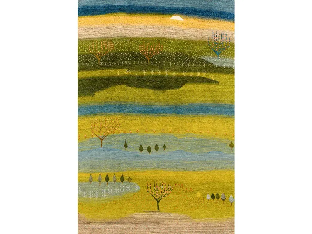 Landscapes of my Fatherland 34 is a rectangular wool rug.Zollanvari Super Fine Gabbeh.The Landscape collection is an integral part of the Zollanvari Gabbeh range. The majority are in Zollanvari Super Fine quality, woven by Ghashgha’i nomads from the Fars Province, who are renowned for extremely fine carpets such as Kashkuli Bibibaff and Wasir Machsus. With this in mind we turned to them for the extremely demanding production of our modern Zollanvari Super Fine Gabbehs. The designs and symbols used are rooted in the old Gabbeh design canon that Zollanvari have reinterpreted with a modern twist and to suit modern interiors and sensibilities.