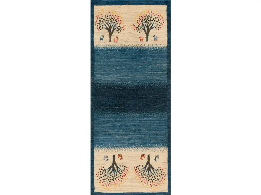 Naïve Landscapes of my Fatherland 12 is a rectangular wool rug.Zollanvari Super Fine Gabbeh.The Landscape collection is an integral part of the Zollanvari Gabbeh range. The majority are in Zollanvari Super Fine quality, woven by Ghashgha’i nomads from the Fars Province, who are renowned for extremely fine carpets such as Kashkuli Bibibaff and Wasir Machsus. With this in mind we turned to them for the extremely demanding production of our modern Zollanvari Super Fine Gabbehs. The designs and symbols used are rooted in the old Gabbeh design canon that Zollanvari have reinterpreted with a modern twist and to suit modern interiors and sensibilities.