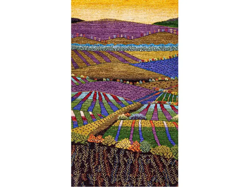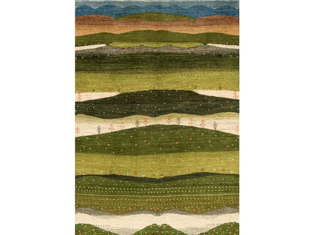 Impressionist Landscapes of my Fatherland 6 is a rectangular wool rug.Zollanvari Super Fine Gabbeh.The Landscape collection is an integral part of the Zollanvari Gabbeh range. The majority are in Zollanvari Super Fine quality, woven by Ghashgha’i nomads from the Fars Province, who are renowned for extremely fine carpets such as Kashkuli Bibibaff and Wasir Machsus. With this in mind we turned to them for the extremely demanding production of our modern Zollanvari Super Fine Gabbehs. The designs and symbols used are rooted in the old Gabbeh design canon that Zollanvari have reinterpreted with a modern twist and to suit modern interiors and sensibilities.