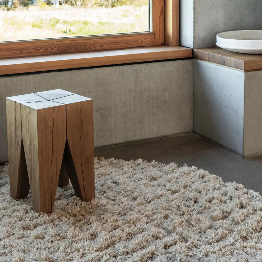 Crafted from wool and linen, Ålegræs is a hand-tufted rug in a unique oval shape designed by Cecilie Manz. Ålegræs features three different pile heights that create a seagrass-like texture with a three-dimensional effect. Drawing inspiration from the intricate beauty of nature, it has a lively surface framed by a contrasting boucle border that adds bold definition and elegance.