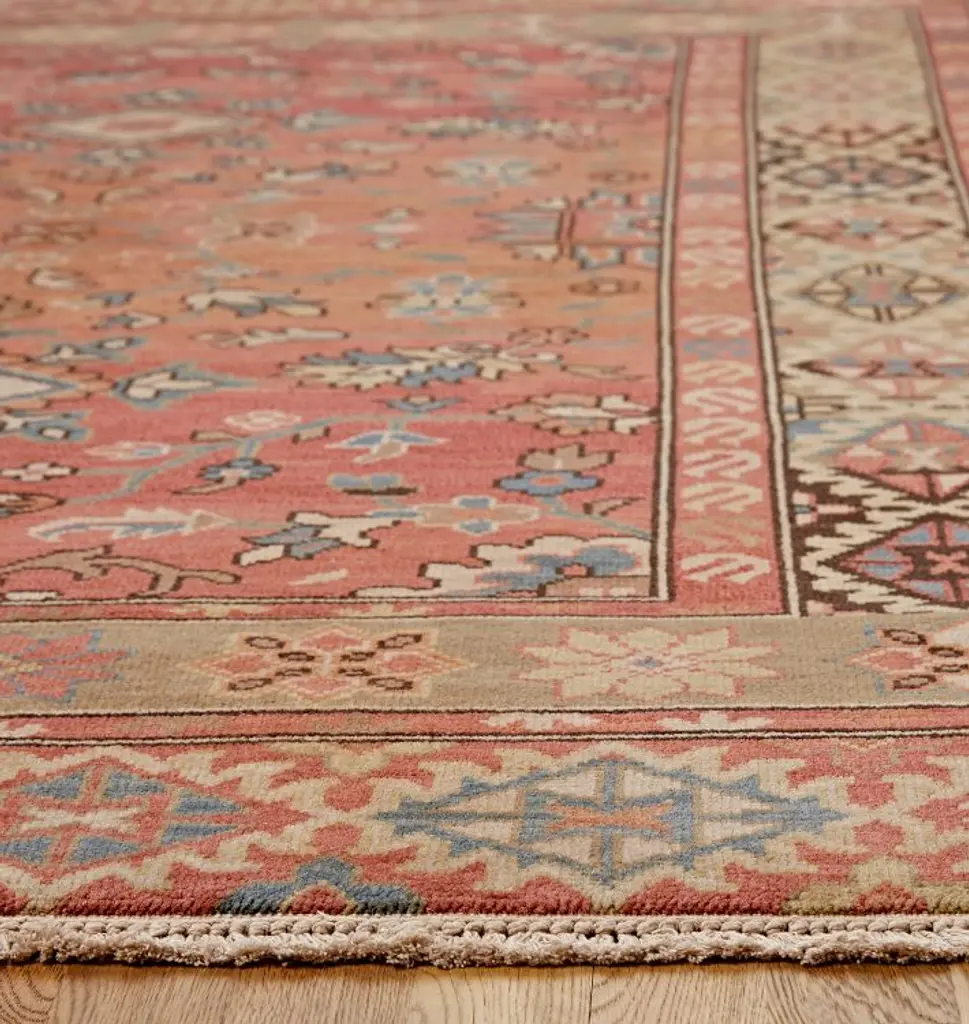 With a vintage-inspired wash and timeless design, Langdon Hand-Knotted Rug adds an enduring sense of style to any space. The beautiful floral pattern features a rich, warm rust-toned palette accented by cool hues of blue and cream. Each rug is crafted by skilled artisans using a hand-knotting technique, resulting in a timeless piece that's made to last. Details You'll Appreciate Traditional design featuring woven striation to add depth The yarn used to weave this rug creates a vintage-inspired, multi-hued design, with a high luster wash that adds a subtle sheen to enhance nuances to yarn color from different angles Crafted 100% by hand using a hand-knotted technique Product Specifications 100% wool Density: 48 knots per square inch Pile Height: 1/2"-medium pile for plush underfoot feel Fringe Length: Approx 2" (fringe length is not included in overall dimensions) Scale of motifs, pattern, and borders will adapt according to rug size Corner swatch represents 8" x 10" motif Use of a rug pad is recommended For indoor use only Handcrafted in India Care Instructions Shedding of loose fibers is normal with new wool rugs and a natural result of being handcrafted. Shedding will diminish with regular vacuuming, usually after 3-6 months. Vacuum regularly on a low-power setting to prevent debris from settling into roots of the fibers. Use a vacuum cleaner without a beater brush as it may cause damage to the pile. Avoid direct and continuous exposure to sunlight. Do not pull loose ends. Clip them with scissors. Rotate rug occasionally to equalize wear. Remove spills immediately. If liquid, blot with clean, undyed cloth by pressing firmly around spill to absorb as much as possible. For hard-to-remove stains, professional rug cleaning is recommended.