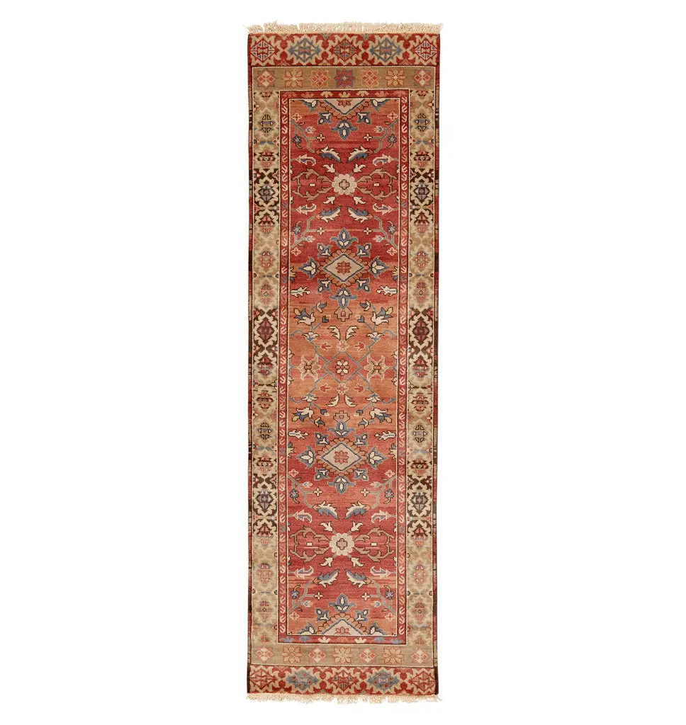 With a vintage-inspired wash and timeless design, Langdon Hand-Knotted Rug adds an enduring sense of style to any space. The beautiful floral pattern features a rich, warm rust-toned palette accented by cool hues of blue and cream. Each rug is crafted by skilled artisans using a hand-knotting technique, resulting in a timeless piece that's made to last. Details You'll Appreciate Traditional design featuring woven striation to add depth The yarn used to weave this rug creates a vintage-inspired, multi-hued design, with a high luster wash that adds a subtle sheen to enhance nuances to yarn color from different angles Crafted 100% by hand using a hand-knotted technique Product Specifications 100% wool Density: 48 knots per square inch Pile Height: 1/2"-medium pile for plush underfoot feel Fringe Length: Approx 2" (fringe length is not included in overall dimensions) Scale of motifs, pattern, and borders will adapt according to rug size Corner swatch represents 8" x 10" motif Use of a rug pad is recommended For indoor use only Handcrafted in India Care Instructions Shedding of loose fibers is normal with new wool rugs and a natural result of being handcrafted. Shedding will diminish with regular vacuuming, usually after 3-6 months. Vacuum regularly on a low-power setting to prevent debris from settling into roots of the fibers. Use a vacuum cleaner without a beater brush as it may cause damage to the pile. Avoid direct and continuous exposure to sunlight. Do not pull loose ends. Clip them with scissors. Rotate rug occasionally to equalize wear. Remove spills immediately. If liquid, blot with clean, undyed cloth by pressing firmly around spill to absorb as much as possible. For hard-to-remove stains, professional rug cleaning is recommended.