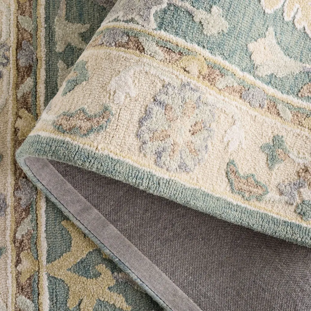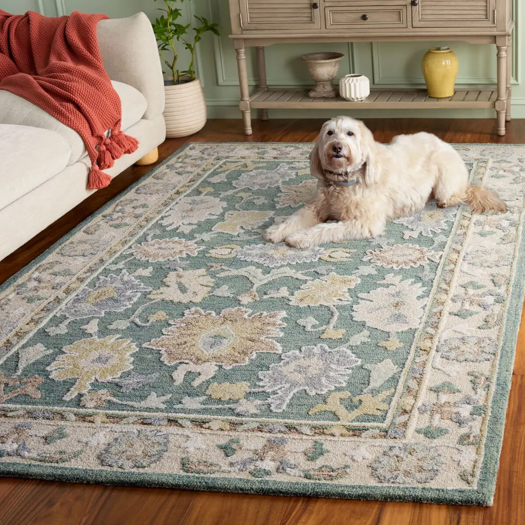 Introduce a touch of elegance to your home with our exquisite area rug. Measuring 3 by 5 feet, this small rectangular piece is crafted from a blend of wool and cotton, showcasing a hand-tufted weave that speaks to traditional artistry. Made in India, the rug features a graceful floral pattern that harmonizes hues of green and beige, perfectly complementing any decor style. With a convenient height of 3/8 inches, it offers a blend of comfort and functionality, enhancing living spaces with warmth and charm. Transform your floor into a piece of art with this beautiful rug, and let its traditional style invite tranquility into your home.