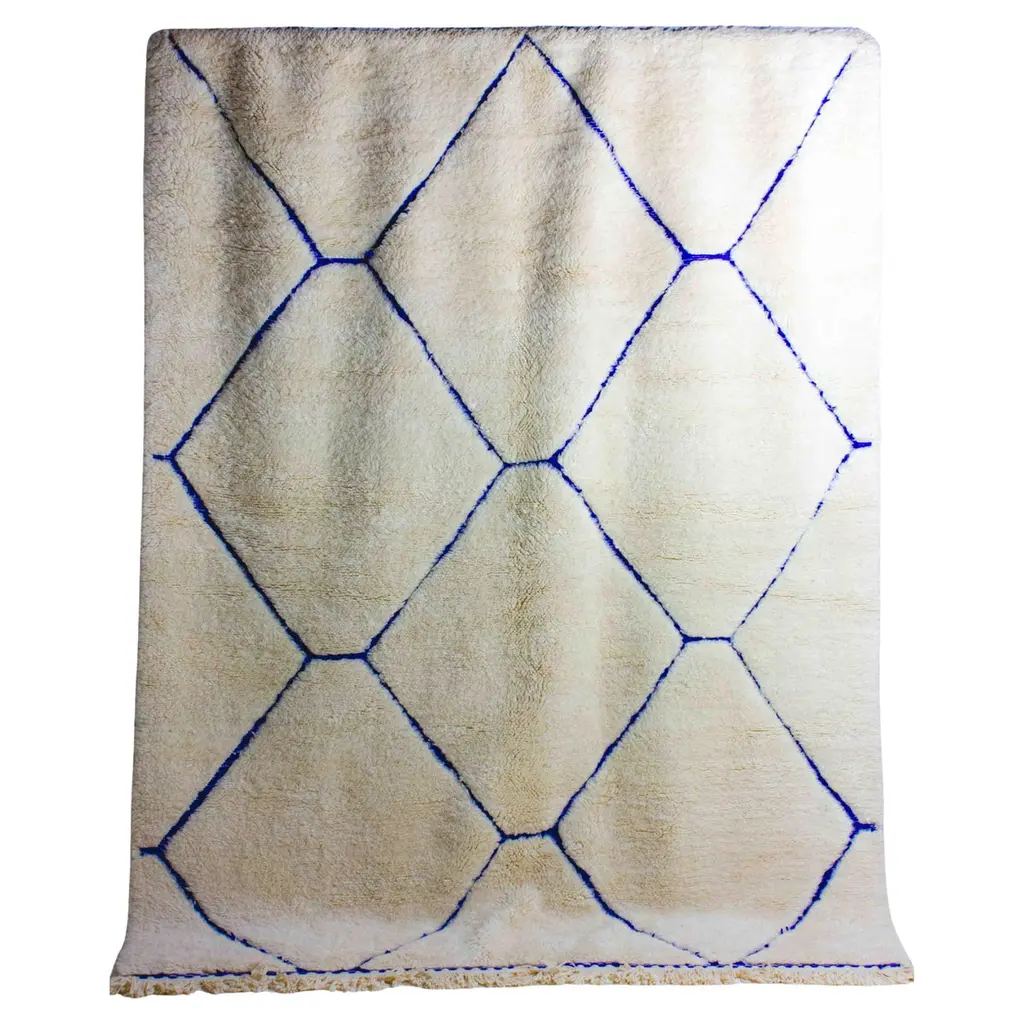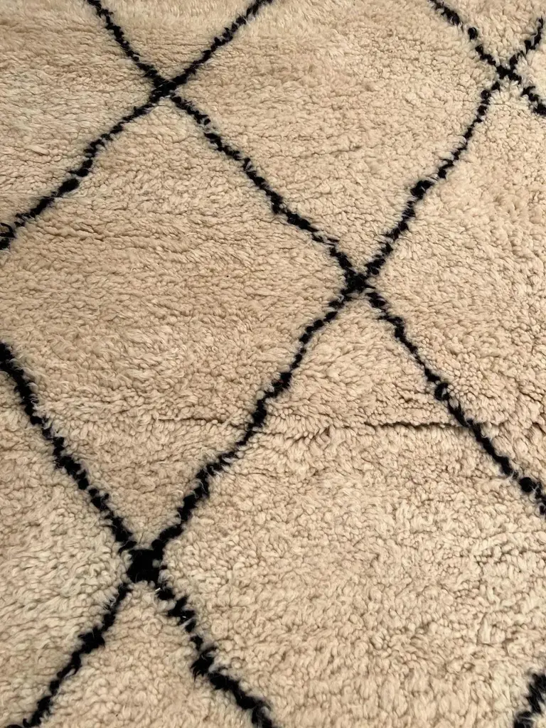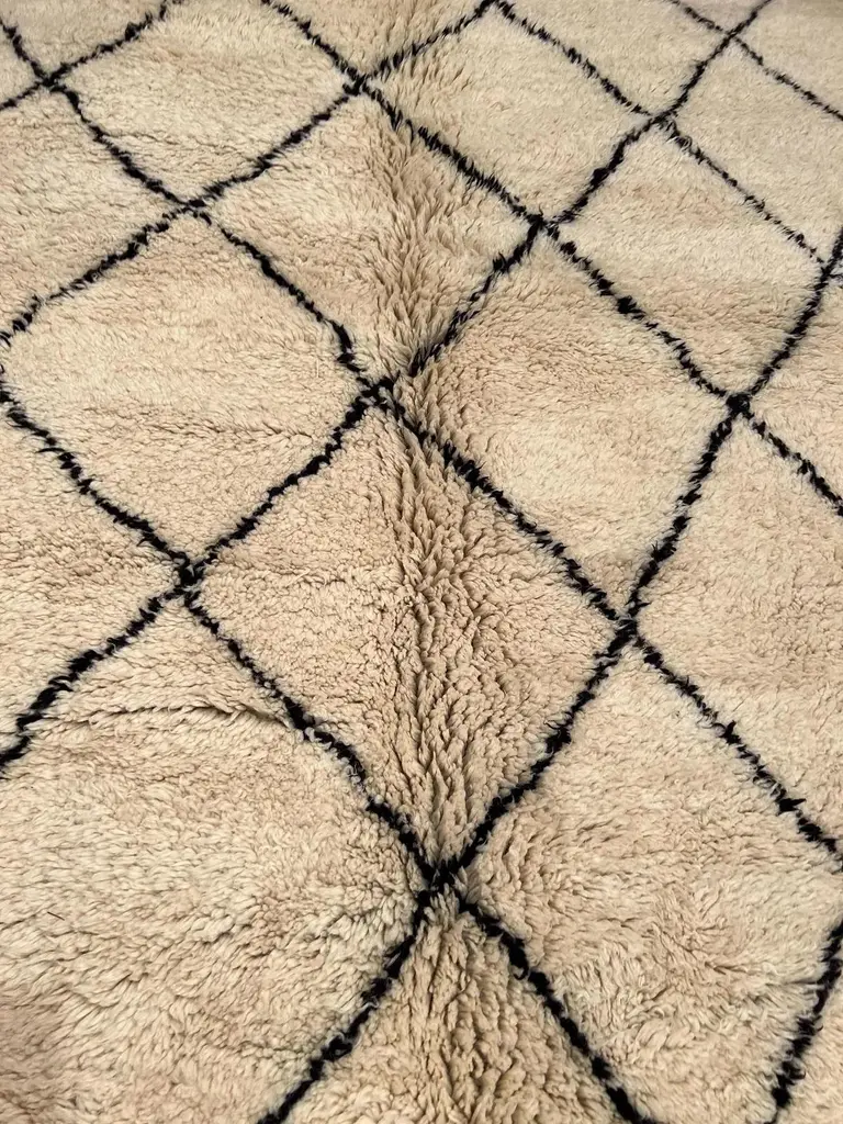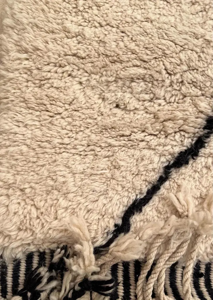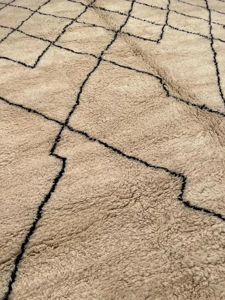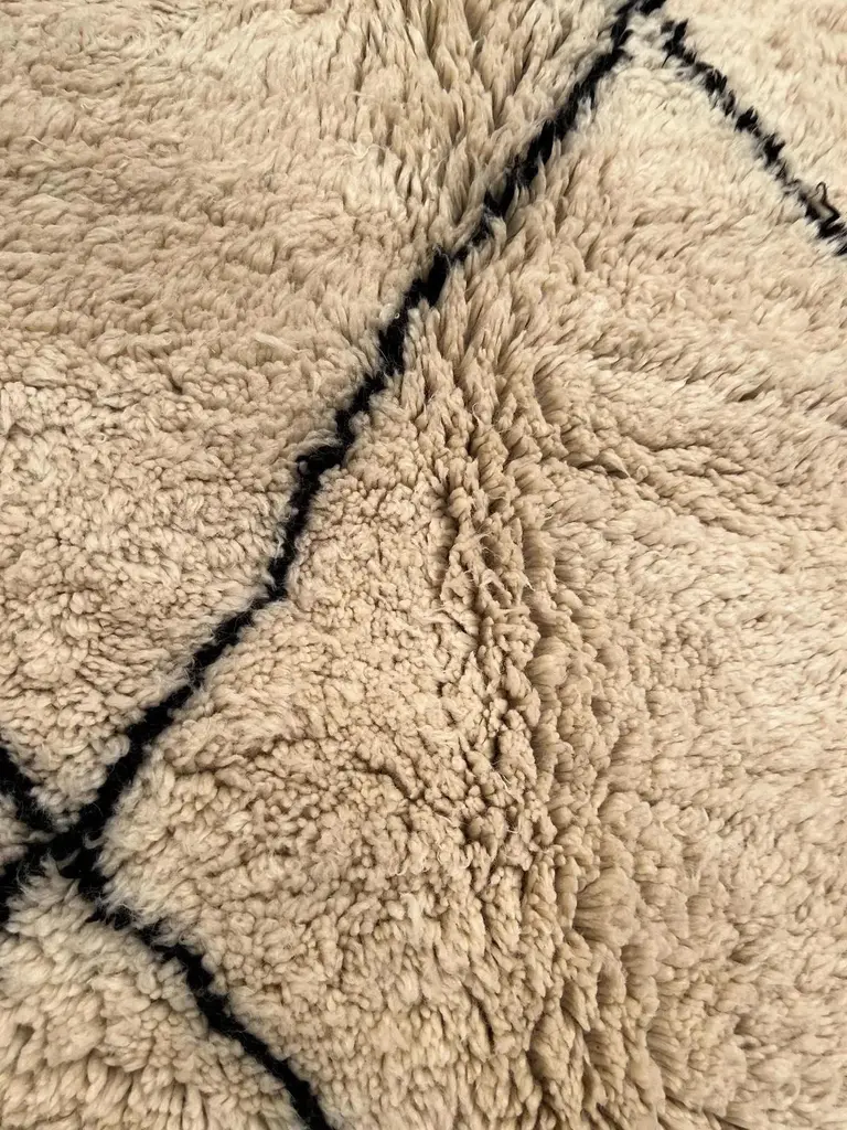Large Cream Modern Moroccan Wool Beni Ourain Rug With Abstract Black Line Design
