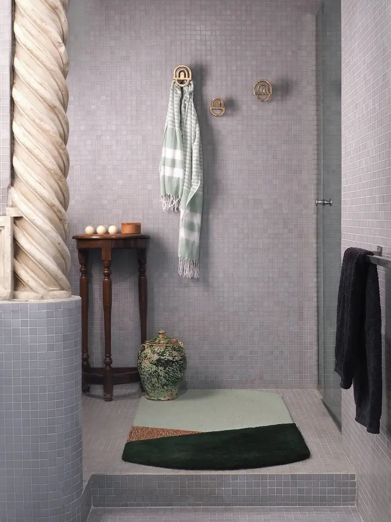 Large green oci right rug by Seraina LareidaDimensions: W 150 x H 280 cm Materials: 100% New Zeland top-quality wool.Available in sizes Medium and Small. Also available in colors: Yellow/Gray, Brick/Pink, Bordeaux/Ecru and, Blue/Brick. Customizable sizes are available.Oci rugs are made in New Zealand wool mixing different technics and yarns lengths to give a different feeling walking on. They are available in three different shapes, each one in three colors palette. Each graphic design rug can match each other getting the bigger composition rug you like. Some velcro stripes can put the rug together. Made with the tafting technique, have been used 100% New Zealand top quality wool. Yearns and manufacture are certificated as handcrafted exclusively in the Italian atelier. Oci means ‘eyes’. it’s also a curious metaphor used to describe all the windows on the building's facade in Venice.SERAINA LAREIDAPortrait Seraina Lareida is a young Swiss designer currently based in Bern/Switzerland.After one year living and working in London, she returned to Switzerland in order to accomplish her MA in Product Design at the ECAL in Lausanne.Ever since, she has been exhibiting her work at renowned places like Design Miami Basel, Bikini Berlin, Maison&Objet Paris, ISPO Munich, Salone Internazionale del Mobile Milan and Musée de Design et d’Arts Appliqués Contemporains Lausanne.Currently, she is working in the product development department of USM Möbelbausysteme, Swiss leader for interior and office furniture.She is also initiating own projects in collaboration with local manufacturers, design labels and art galleries.