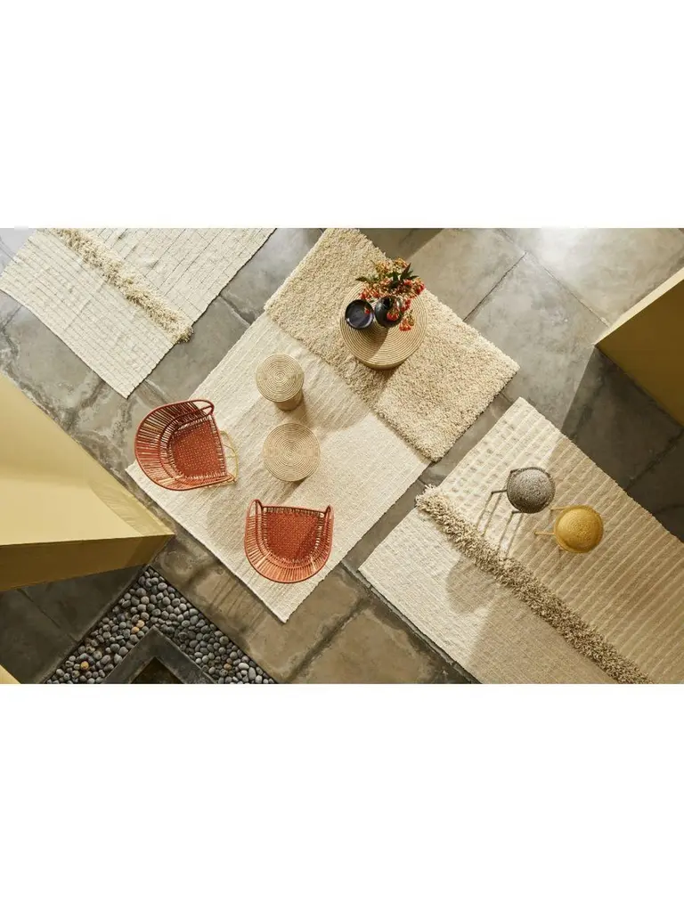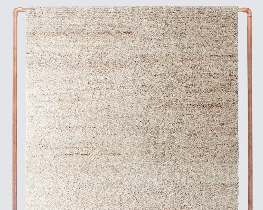Large moton Subas rug by Sebastian HerknerMaterials: 100% natural virgin wool. Technique: Naturally dyed fibers. Hand-woven in Colombia.Dimensions: W 310 x L 420 cm Available in colors: karo, linea 1, linea 2, moton, oruga.The Subas Karo rug, available in three sizes, is a subtle, monochrome design by Sebastian Herkner, who experimented with mixing different structures and surfaces. The entirely handmade piece combines a stripe and checks pattern as well as various pile heights and weaving techniques, giving the wool rug a contemporary feel while showcasing the artful craftsmanship of the Colombian weavers. It’s understated, yet the intriguing design that’s great for adding textures to any room. Each rug is manufactured in family-run workshops located in Suba, a suburb of Colombia’s capital Bogotá. The craftspeople there have learned the techniques to process sheep wool from previous generations. Alone the preparation of the wool takes three days, while the artesanos and artesanas work 15 days on producing the final rug. German designer Sebastian Herkner is a long-term collaborator of Ames and has visited Colombia multiple times to experience the country’s cities, nature and people first hand. He also visited many of the ateliers that Ames has partnered with to learn about the unique traditional crafts of Colombia's regions. A sought-after contemporary designer and recipient of many industry awards, he has worked with many international design brands, creating intriguing pieces that showcase his intuition for interesting material, color, and texture combinations.
