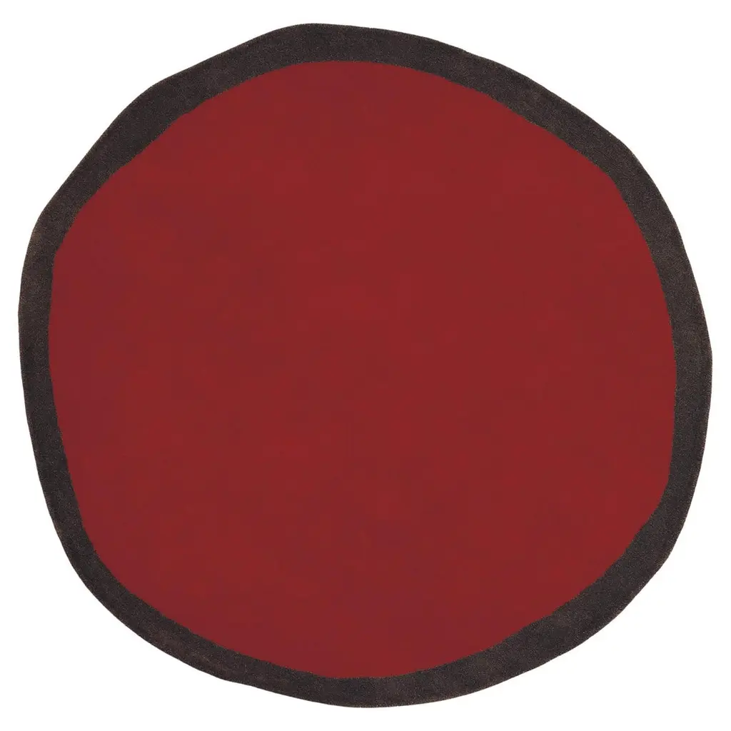 Large Nanimarquina 'Aros' round rug in black and gray. Executed in 100% hand-tufted New Zealand wool. This geometric design comprised of contrasting colors is a rug that is never exact or symmetrical. Its subtle asymmetry invites freedom from conventional uses, making it possible to combine more than one piece to create new volumes in a single space. Its slightly irregular outline allows the handmade nature of this area rug to shine magnificently. Price is per item. Available in unlimited quantities and in two sizes. Choice of black and gray or red and black color palettes. This listing is for the large size rug in black and gray. Custom sizing available upon request.Standard in-stock lead time 2-3 weeks. Out of stock or custom sizing can add an additional 11 weeks or more. Inventory availability subject to change at any time.Made to order. All sales are final.Please note that due to the organic and handmade nature of this fiber some variation in color may occur from piece to piece, which may become further pronounced with prolonged exposure to sunlight.Also note this item must ship directly from Nanimarquina’s fulfillment center, so 1stDibs arranged shipping or local pick-up are not an option. Shipping cost quoted is per item and cannot be combined.
