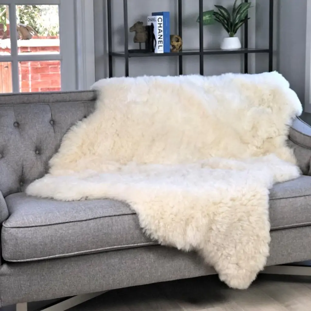 Large Sheepskin Throw Rug For Bed, Sofa Or Floor, Grey Short Wool