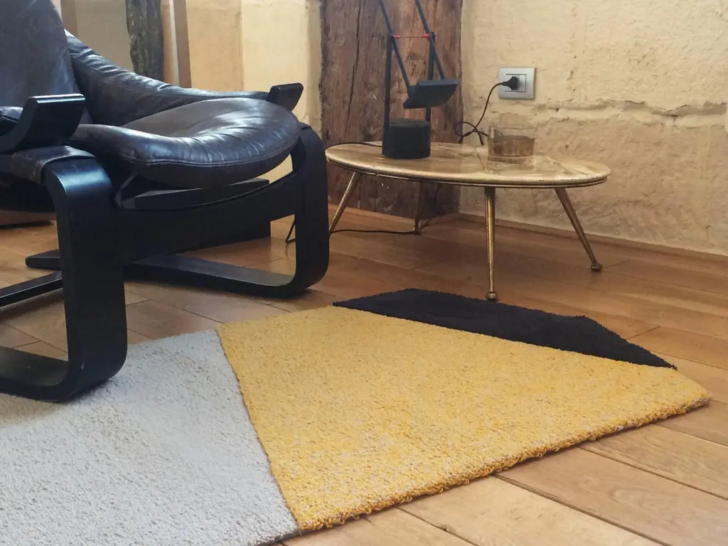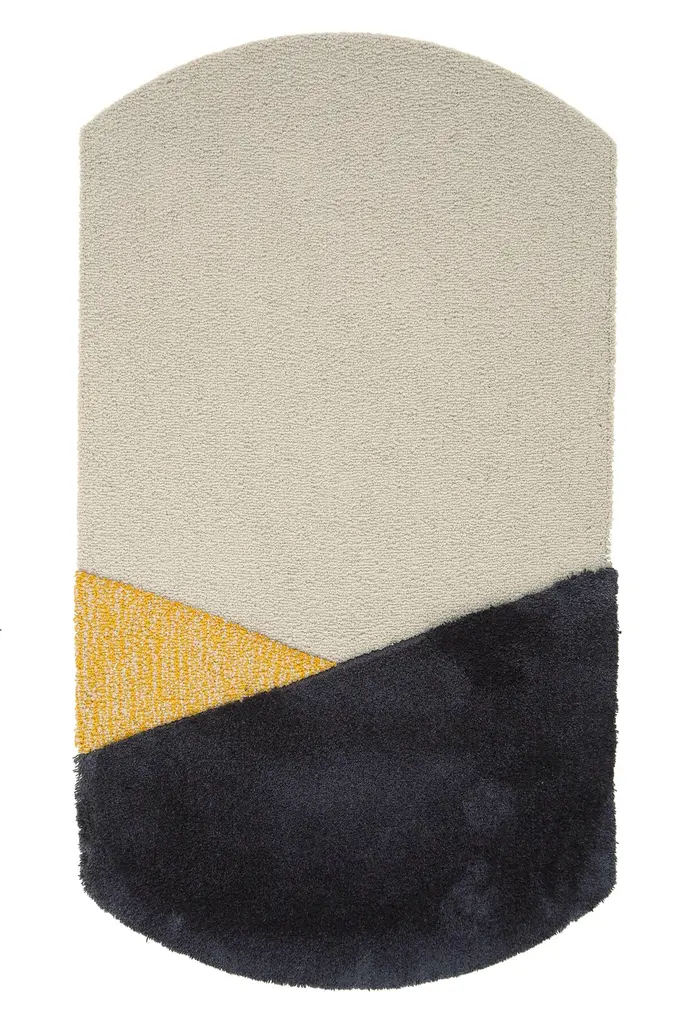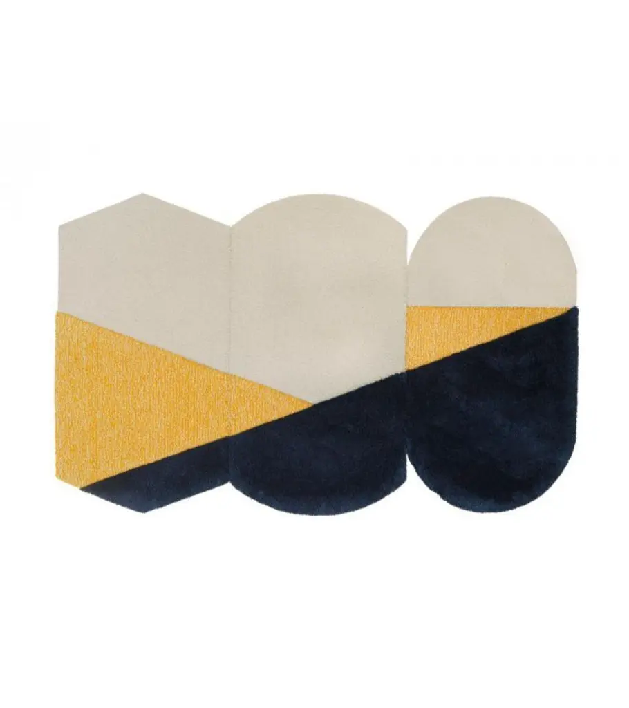 Large Yellow gray oci rug Triptych by Seraina Lareida.Dimensions: W 450 x H 280 cm.Materials: 100% New Zeland top-quality wool. Available in sizes small and medium. Also available in colors: Brick brown, green/brick, bordeaux/ecru, blue/brick. Customizable size is available.Oci rugs are made in New Zealand wool mixing different technics and yarns length to give a different feeling walking on. They are available in three different shapes, each one in three colors palette. Each graphic design rug can match each other getting the bigger composition rug you like. Some velcro stripes can put the rug together. Made with the tafting technique, have been used 100% New Zealand top quality wool. Yearns and manufacture are certificate as handcrafted exclusively in the Italian atelier. /Oci/ means ‘eyes’. it’s also a curious metaphor used to describe all the windows on the building's facade in Venice.Seraina LareidaPortrait Seraina Lareida is a young Swiss designer currently based in Bern/Switzerland.After one year living and working in London, she returned to Switzerland in order to accomplish her MA in Product Design at the ECAL in Lausanne.Ever since, she has been exhibiting her work at renowned places like Design Miami Basel, Bikini Berlin, Maison&Objet Paris, ISPO Munich, Salone Internazionale del Mobile Milan and Musée de Design et d’Arts Appliqués Contemporains Lausanne.Currently, she is working in the product development department of USM Möbelbausysteme, Swiss leader for interior and office furniture.She is also initiating own projects in collaboration with local manufacturers, design labels and art galleries.