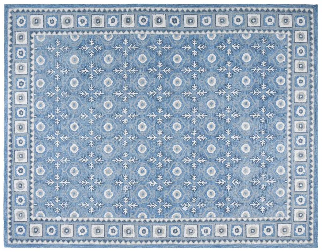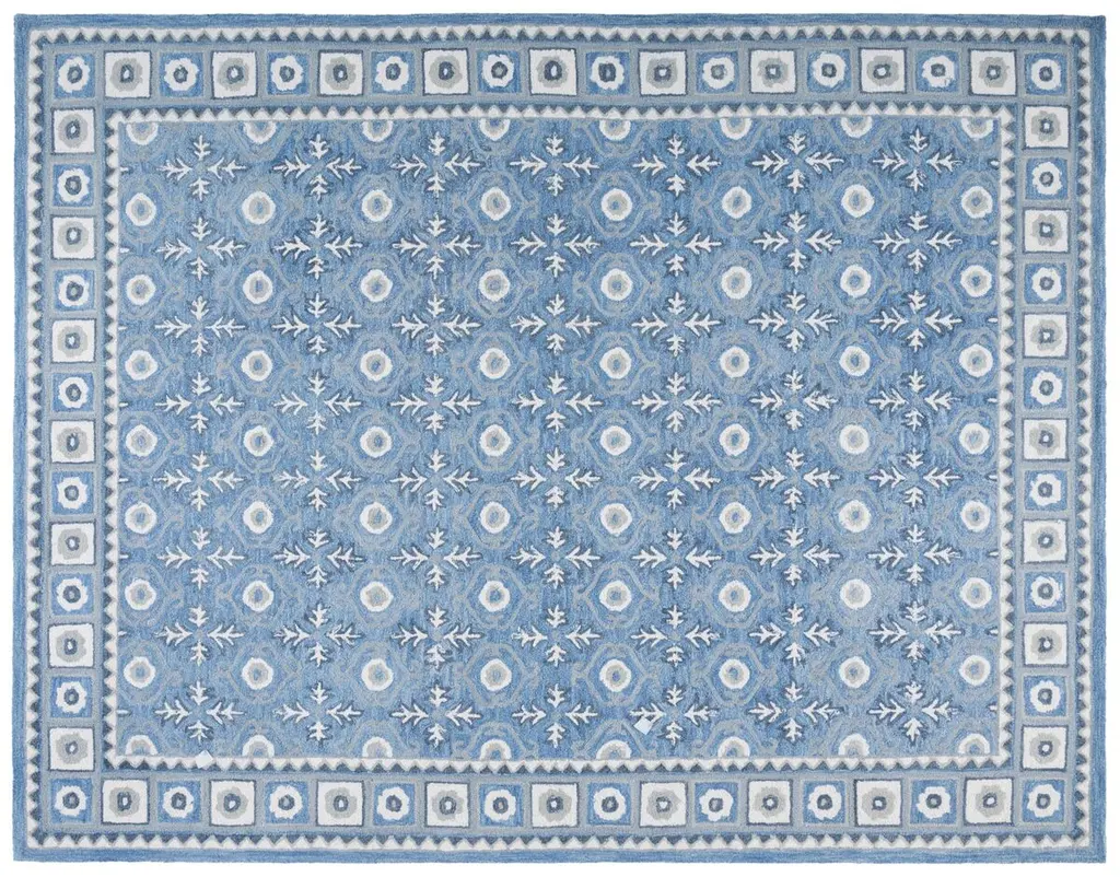 Transform your living space with the elegance and charm of this large rectangle area rug, size 10 feet by 14 feet, boasting a timeless blue and ivory color palette. The design features an intricate pattern of floral motifs and geometrical shapes, creating a harmonious blend of traditional and contemporary aesthetics. The rug's height stands at a comfortable 3/8 inch, perfect for underfoot comfort without compromising on style. Each rug is meticulously hand tufted, a craftsman technique that ensures durability and adds a unique touch to each piece. The blend of 80% wool and 20% cotton guarantees a soft texture that is both warm and resilient, making it an ideal choice for any area of your home. Crafted in India, this rug not only brings with it the heritage of one of the world's most renowned rug-making regions but also a promise of quality and meticulous attention to detail. The combination of luxurious materials and exquisite design makes this rug a must-have for those who seek to add a touch of sophistication to their decor.