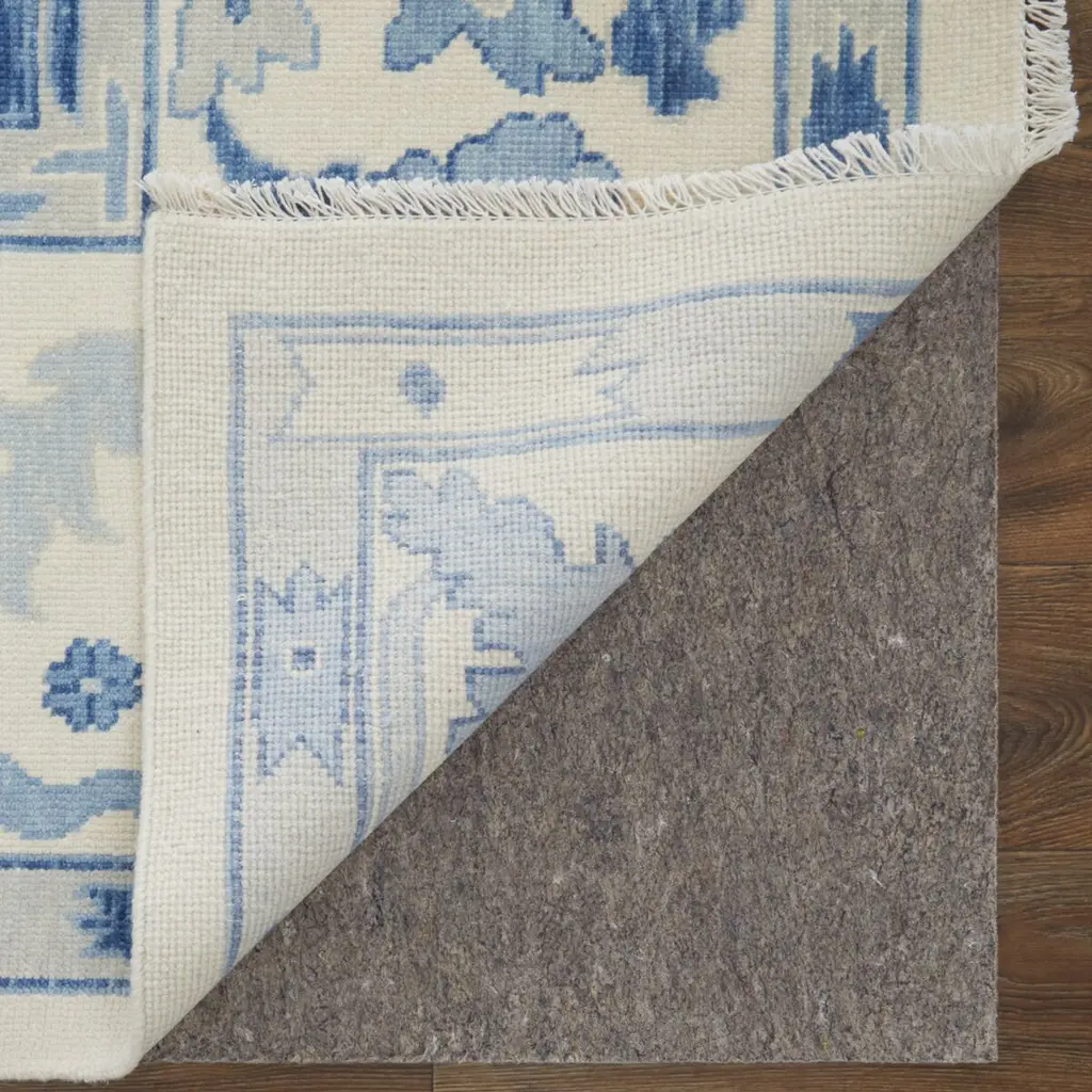Discover the Larson Collection, where traditional craftsmanship meets modern functionality. Hand-knotted in India from wool, these rugs feature a low pile for easy care and durability. The collection's floral and botanical patterns, bordered by scrolls, come alive in hues of ivory, blue, and green, making them a versatile addition to any room. Designed to resist stains, water, and fading, the Larson rugs blend seamlessly with transitional, craftsman, and casual styles.