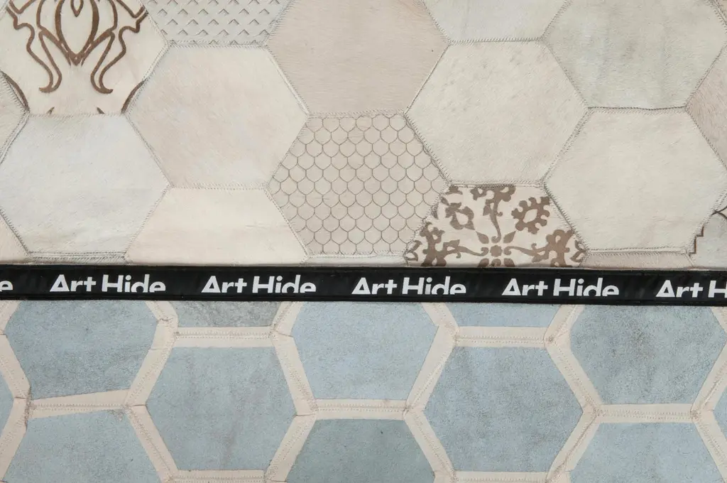 This high-impact, jaw dropping beauty fashionably displays all of Art hide’s signature laser burns has now been adapted in beautiful tones of grey and cream is sure to create a statement and turn heads.This rug is created from premium quality cowhide, sourced from Brazil and Argentina. The Atomo is cut to precise angles and then pieced together using commercial grade nylon thread to create its stunning effect. Small measures 2 x 1.6 m (6’7” x 5’3”) and Large measures 2 x 3 M (6’7” x 9’8”)This item can easily be customized to any color size or shape upon request.Art Hide rugs are usually made to order. Please allow 4 -5 weeks for delivery.
