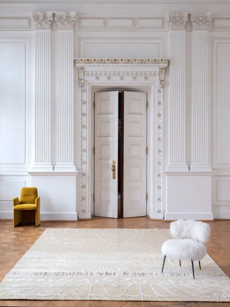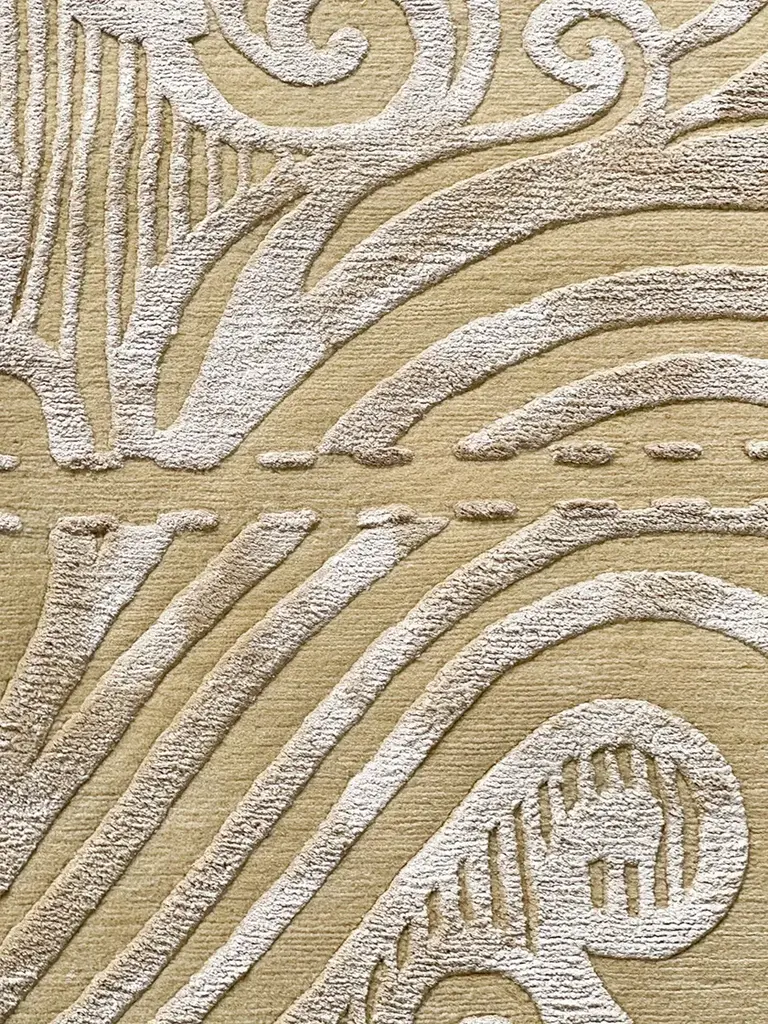 Material: Wool, SilkKnot Density: 100 knots/inch²Pile Height: 5 - 14mmTechnique: Hand-knottedCustom sizes and colors on requestThe Per Sempre collection draws inspiration from intricate historical embroidery patterns and traditional craftsmanship that, translated into a contemporary visual language, reflect Tapis Rouge's search for perfection and the spirit of innovation by playing with solids and voids.The collection's primary color palette is expressive, deep, and future-muted autumn shades. The Beatrice hand-knotted rug contains 70 % wool and 30 % silk. A 100 knots/inch² knot density shapes the drawing details; the pile is 5 to 7 mm height.