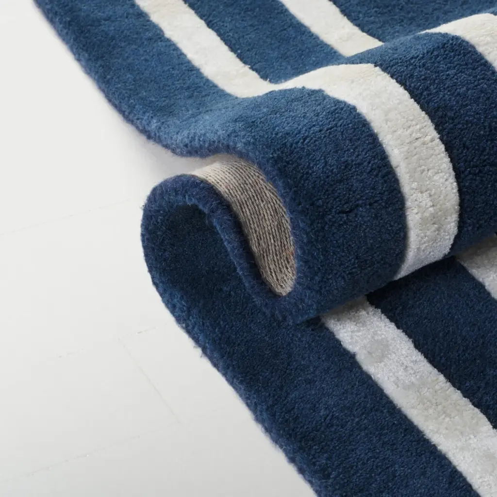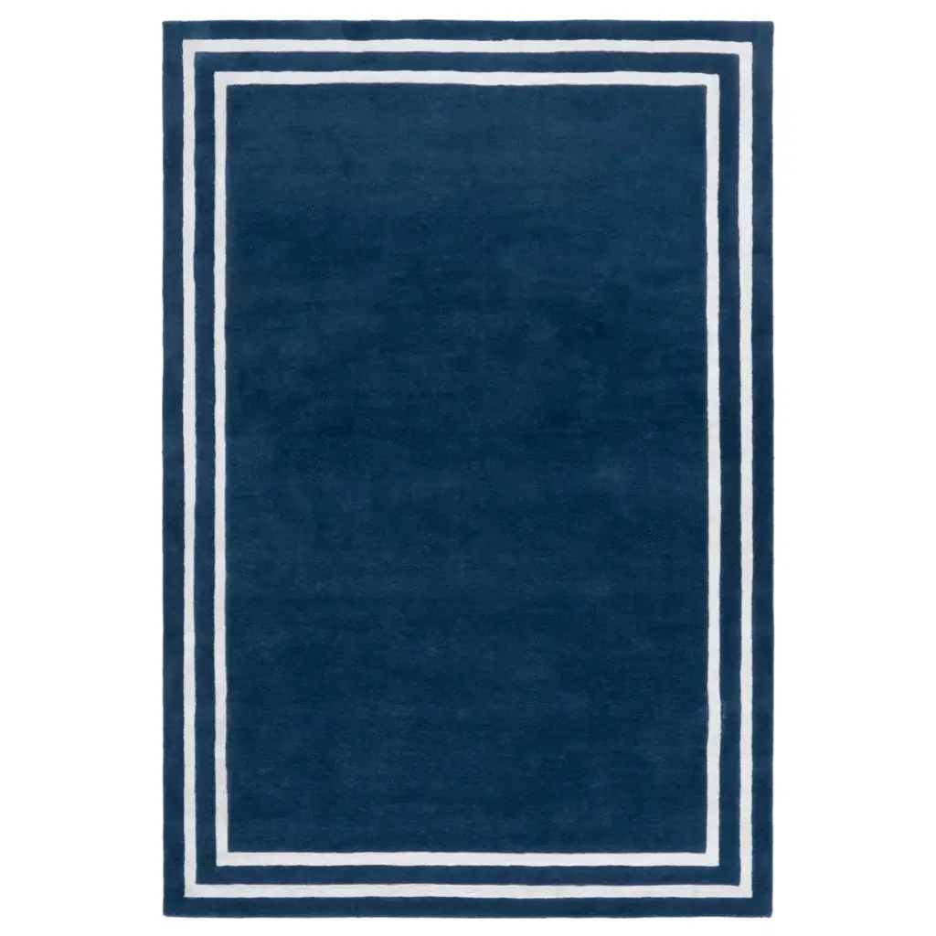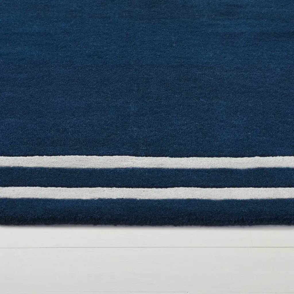Elevate your space with the timeless charm of our large rectangle area rug, a hand-tufted masterpiece measuring 9 feet by 12 feet, with a comfortable pile height of 3/8 inches. Expertly crafted in India, this rug boasts a rich blend of 70% wool and 30% viscose, assuring both luxury and durability.The design features a deep dark blue field framed beautifully by an elegant ivory border, creating a classic look that commands attention while seamlessly blending with a variety of decor styles. This rug's understated pattern exudes sophistication and is perfectly suited for spacious living areas, dining rooms, or large bedrooms.Step into comfort and class with this area rug, where quality materials and exquisite craftsmanship meet to create a truly remarkable addition to your home.