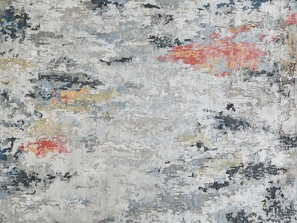 The luxurious Laureno rug stuns with soft bamboo silk hand knotted into an abstract work of art. With its painterly design and gorgeous coloration, this rug enlivens any room.