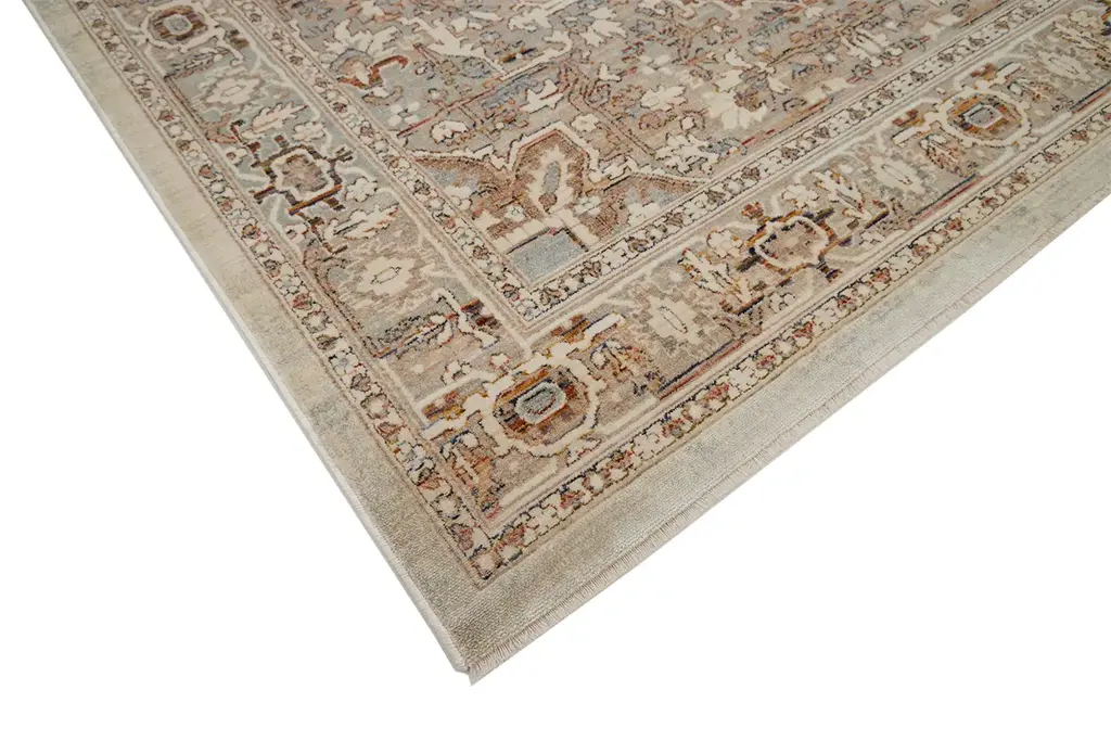 Accent your home with the neutral beauty of our Layla rug. The blend of grey, cream, beige, light blue and terracotta, combine to highlight the subtle beauty of the traditional pattern seen in this piece. Please select your size before adding to cart.
