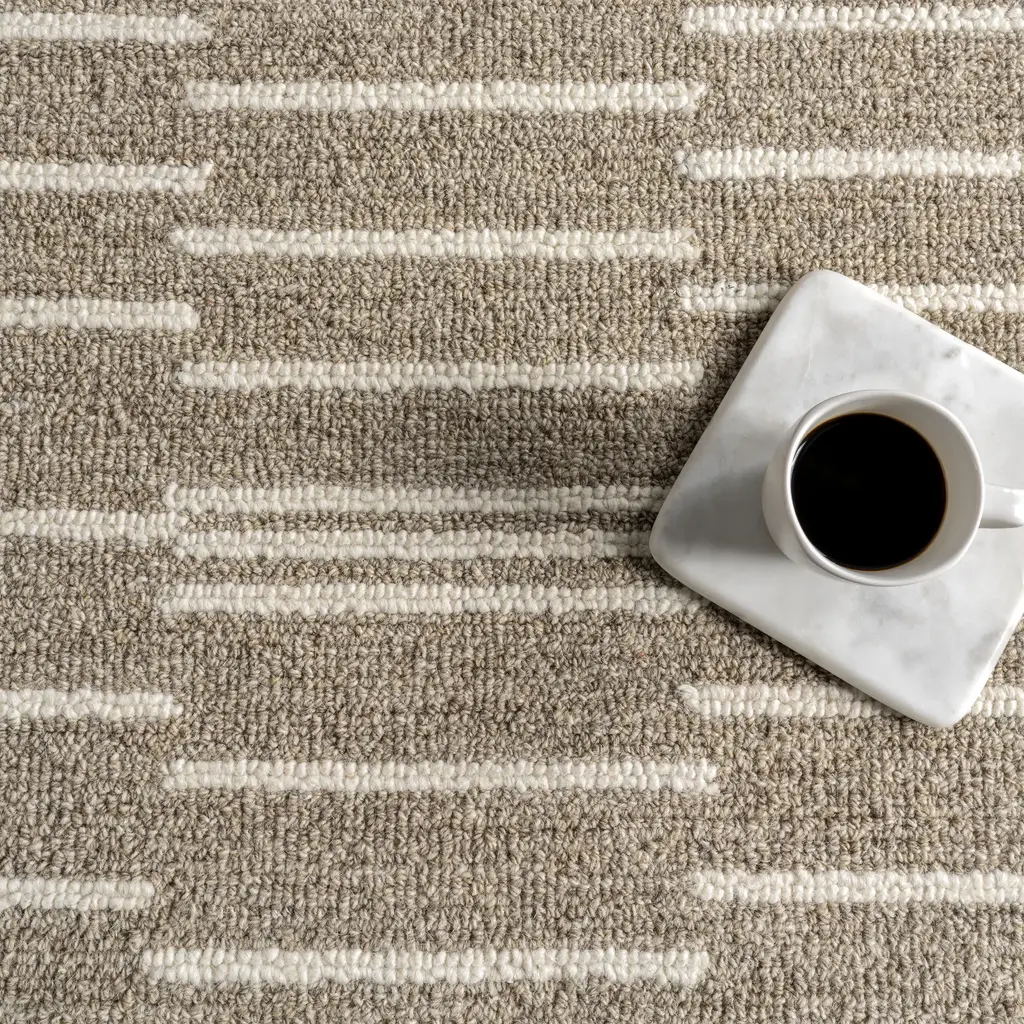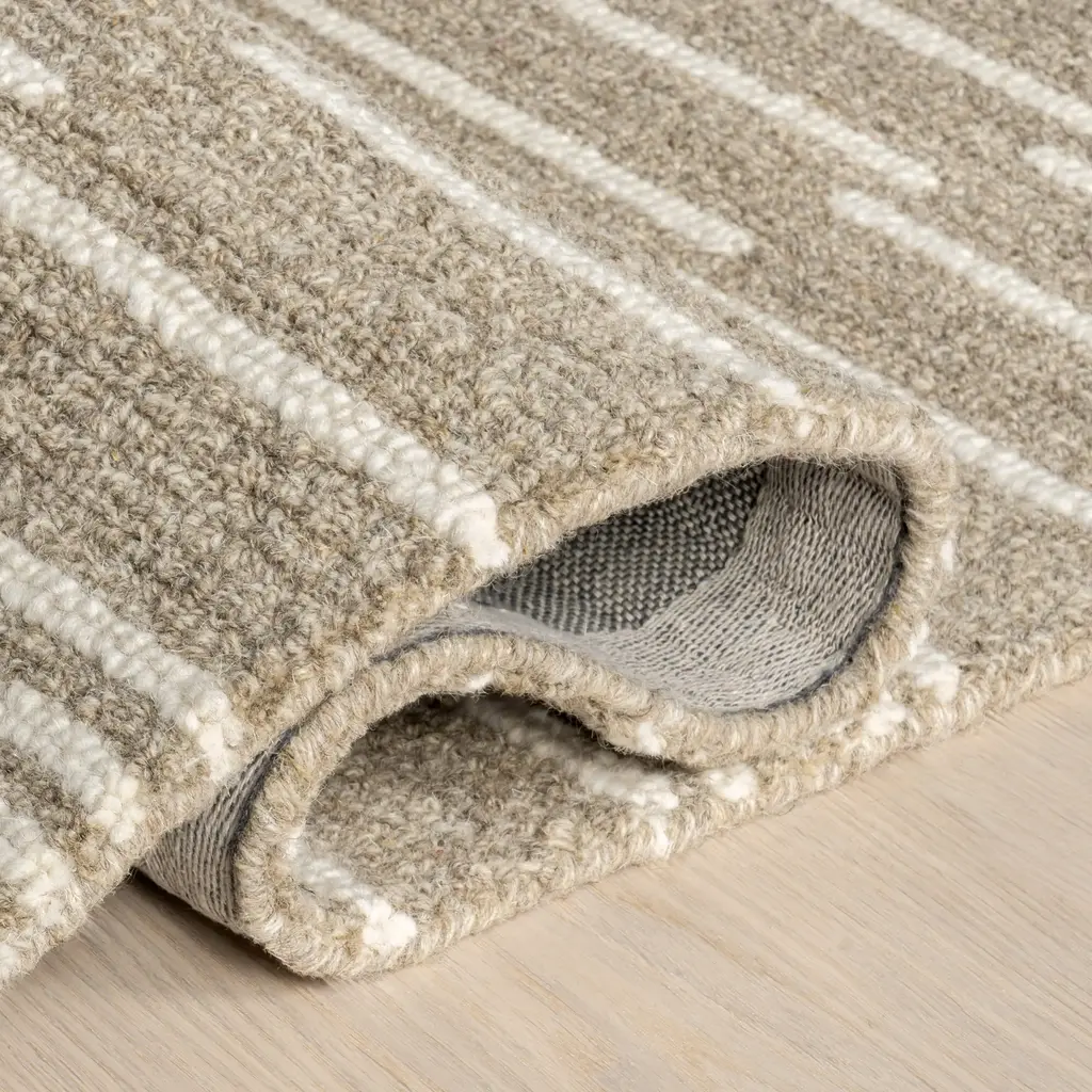 Elevate your home's charm with this luxurious indoor area rug, meticulously crafted from the finest wool to bring an unparalleled level of comfort and sophistication to your living space. Sink your feet into its soft, plush fibers, designed to provide a cozy oasis in any room of your home. Embrace the timeless elegance of our rug's clean, geometric pattern, adding a touch of modern flair to your decor. Its neutral hues blend seamlessly with any interior style, making it a truly versatile home accent that effortlessly complements your existing furniture and color scheme. Whether placed in the center of your living room, under your dining table, or beside your bed, this exquisite wool rug promises to elevate the ambiance of any space with its understated charm and superior quality. Transform your home into a sanctuary of style and comfort with our indulgent indoor area rug.
