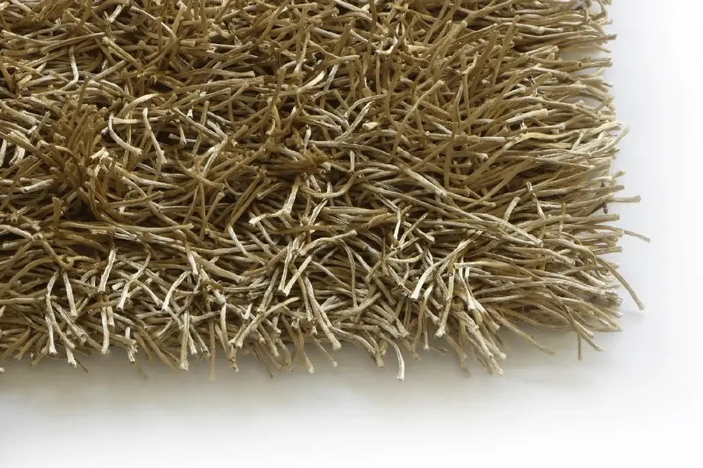 "Le Materie Oro Antico" by G.T.DESIGN is a thick rug produced using fine and light fibers in a vivid vintage gold color.Made in polyester on a cotton base, this modern rug is soft and welcoming, yet strong and easy to maintain. Polyester is, in fact, resistant to tearing and abrasion, light, humidity and micro-organisms, and does not deteriorate over time. Le Materie Poliestere is designed by Deanna Comellini, Creative Director of Italian manufacturer G.T.DESIGN, a pioneer in the contemporary rug design industry.Material: polyester - Structure: hand woven on traditional looms - Thickness: 45 mm